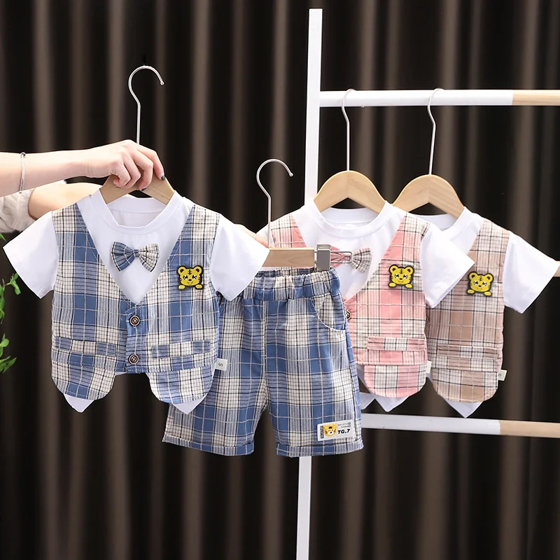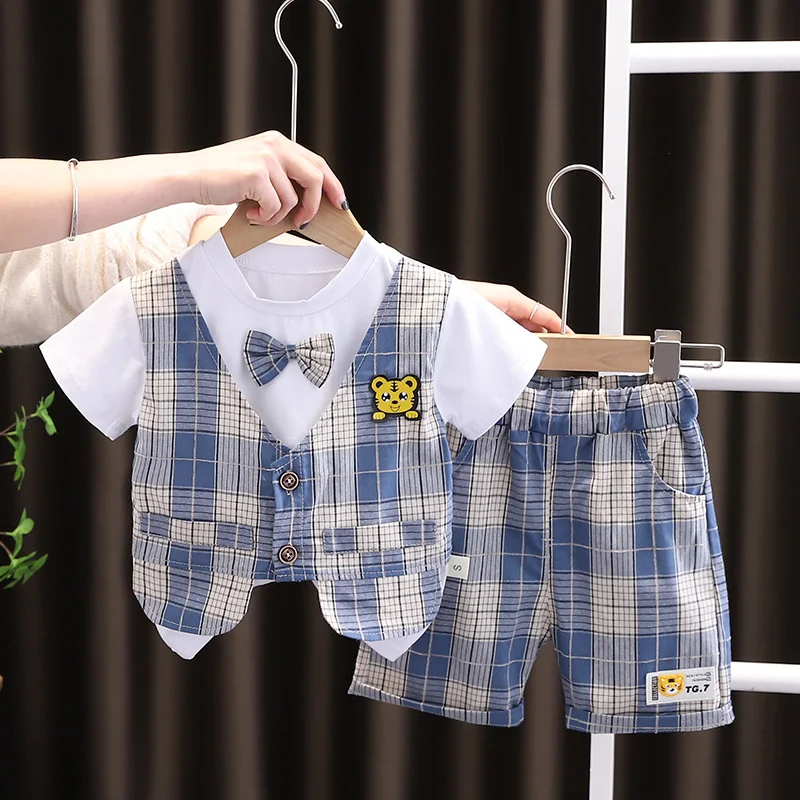 Costume d'été à la mode pour bébés garçons, T-Shirt et short en coton à carreaux pour enfants, Costume décontracté pour tout-petits, survêtements pour enfants, 2 pièces/ensembles, nouvelle collection