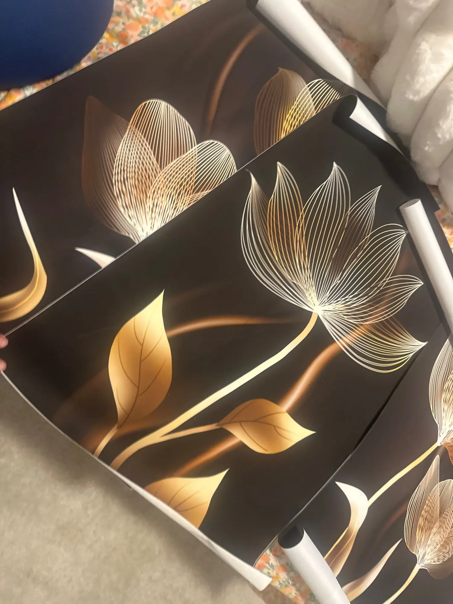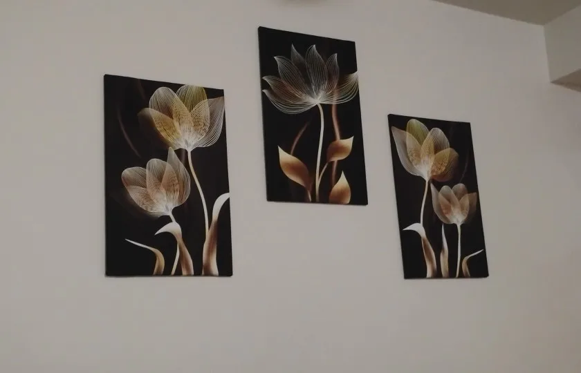 Peinture sur toile murale à fleurs noires et dorées