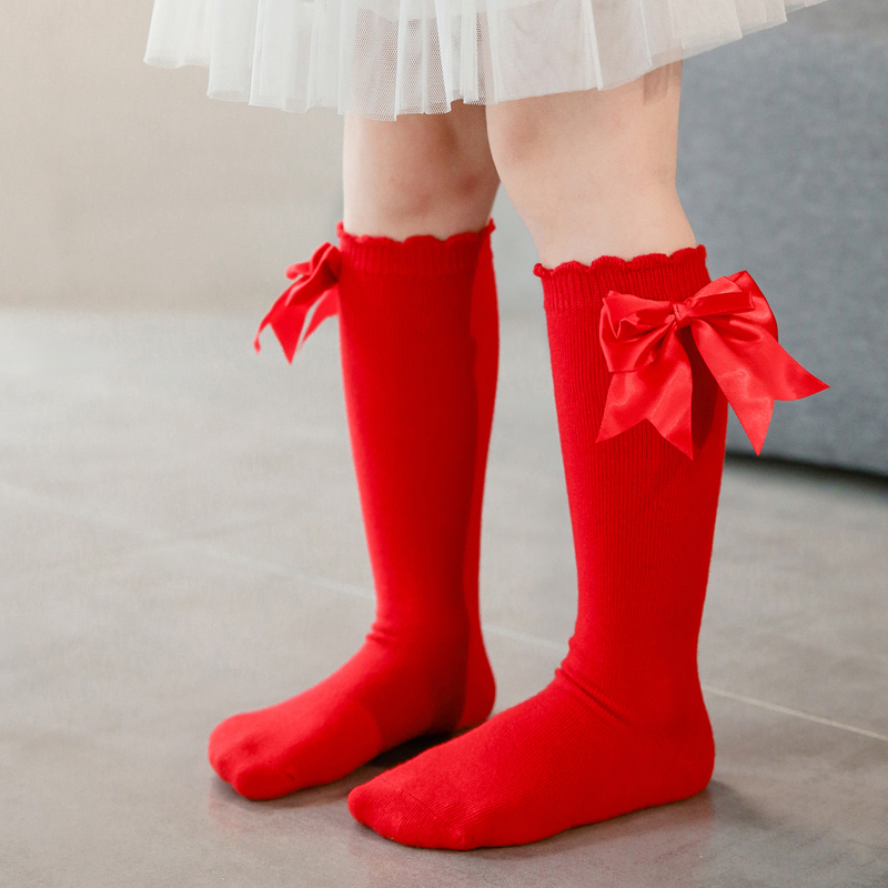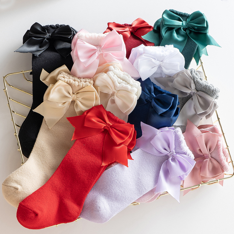 Bas en soie à bretelles et nœuds jusqu'au genou