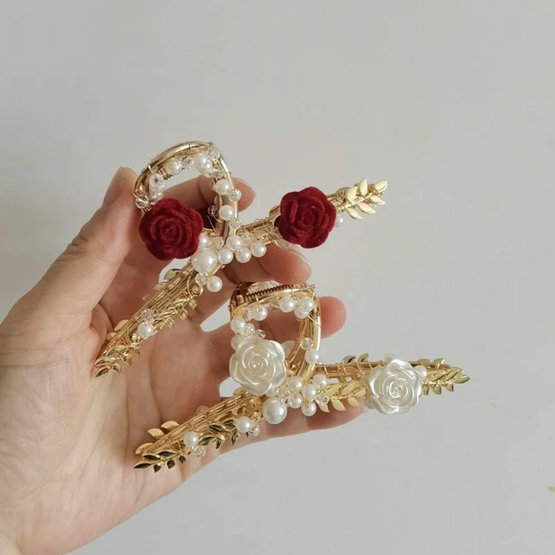 Pince à cheveux en alliage de fleurs faite à la main, pince à requin, en métal élégant, pince à cheveux pour tête arrière, épingle à cheveux, accessoires pour cheveux, 2023
