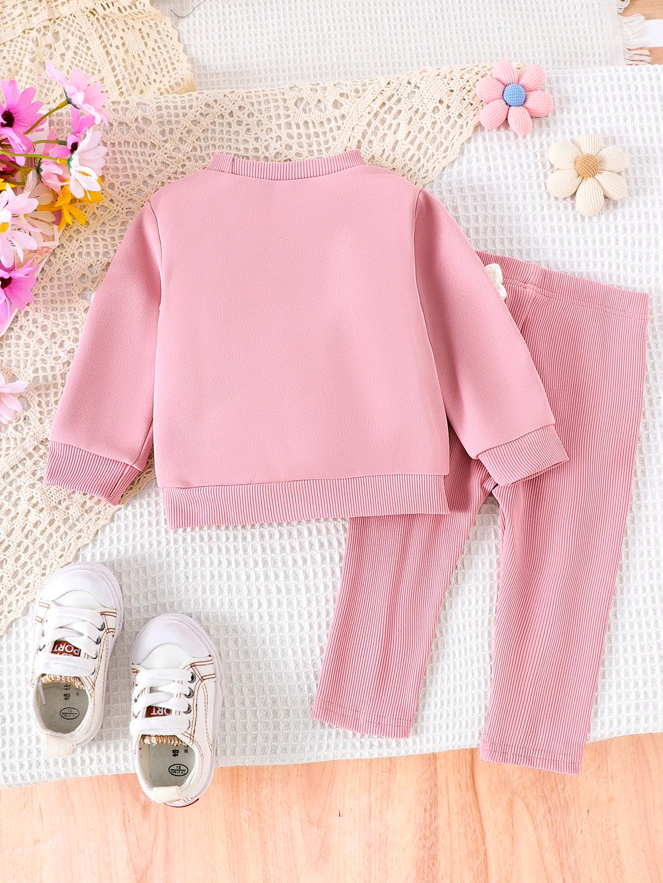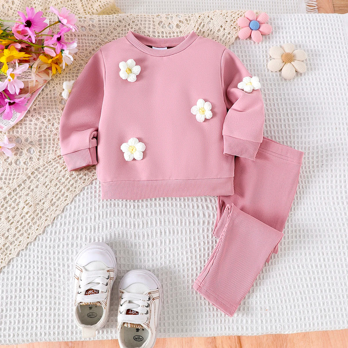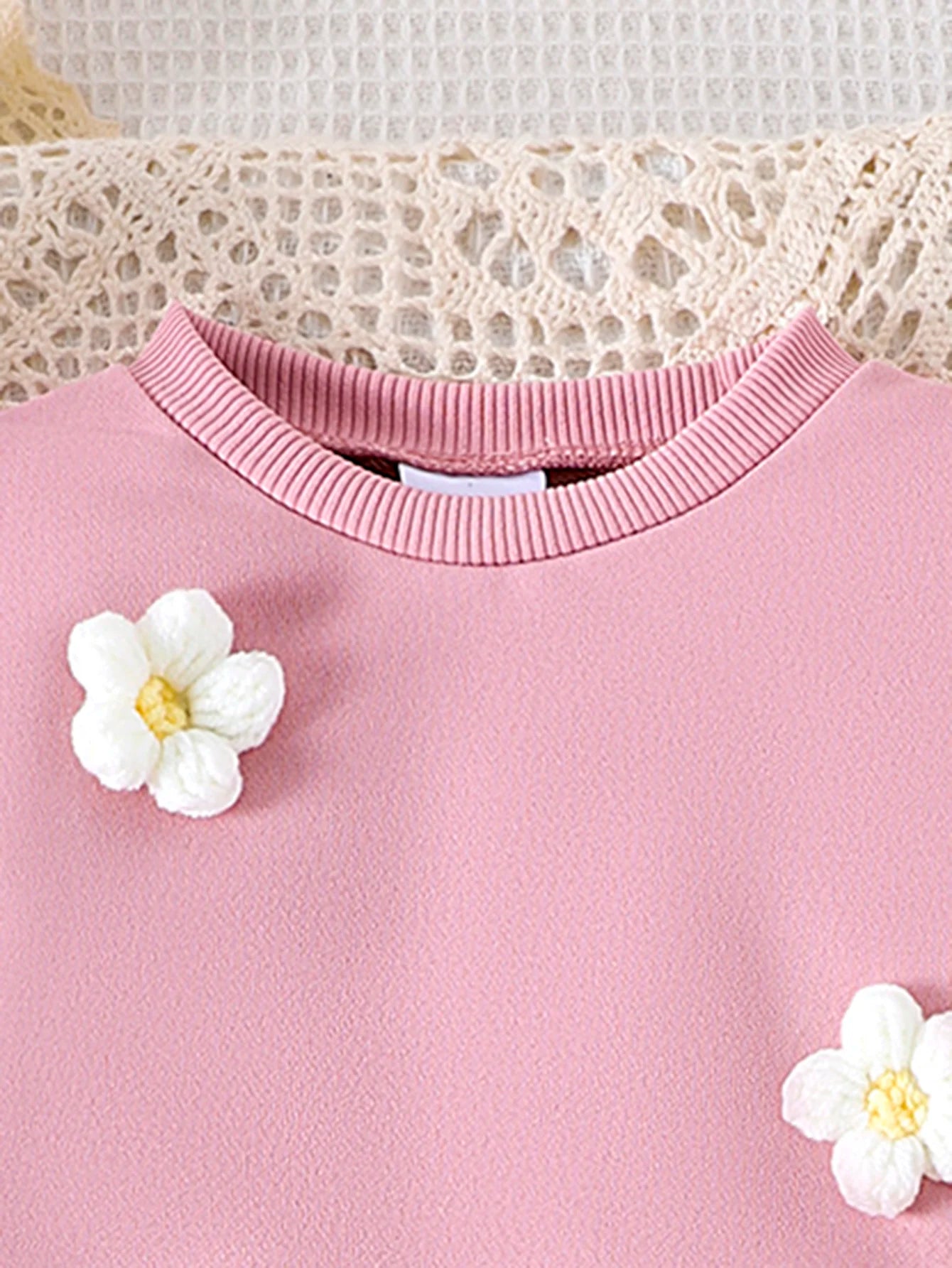Haut à col rond imprimé avec motif de fleurs et visage souriant pour enfants