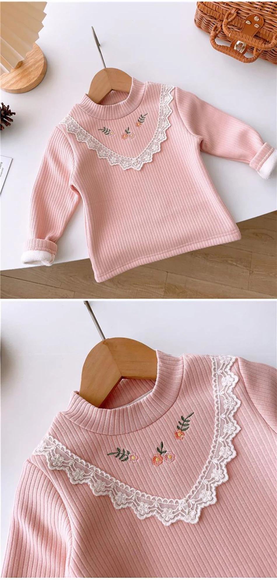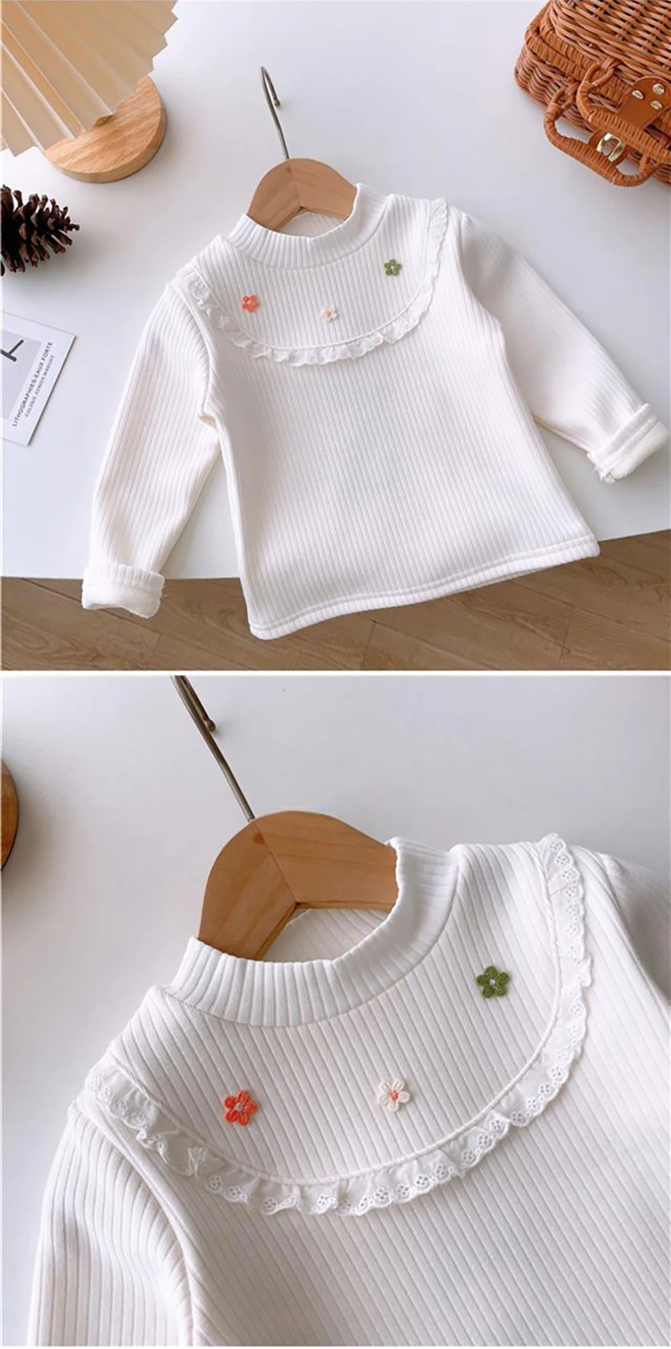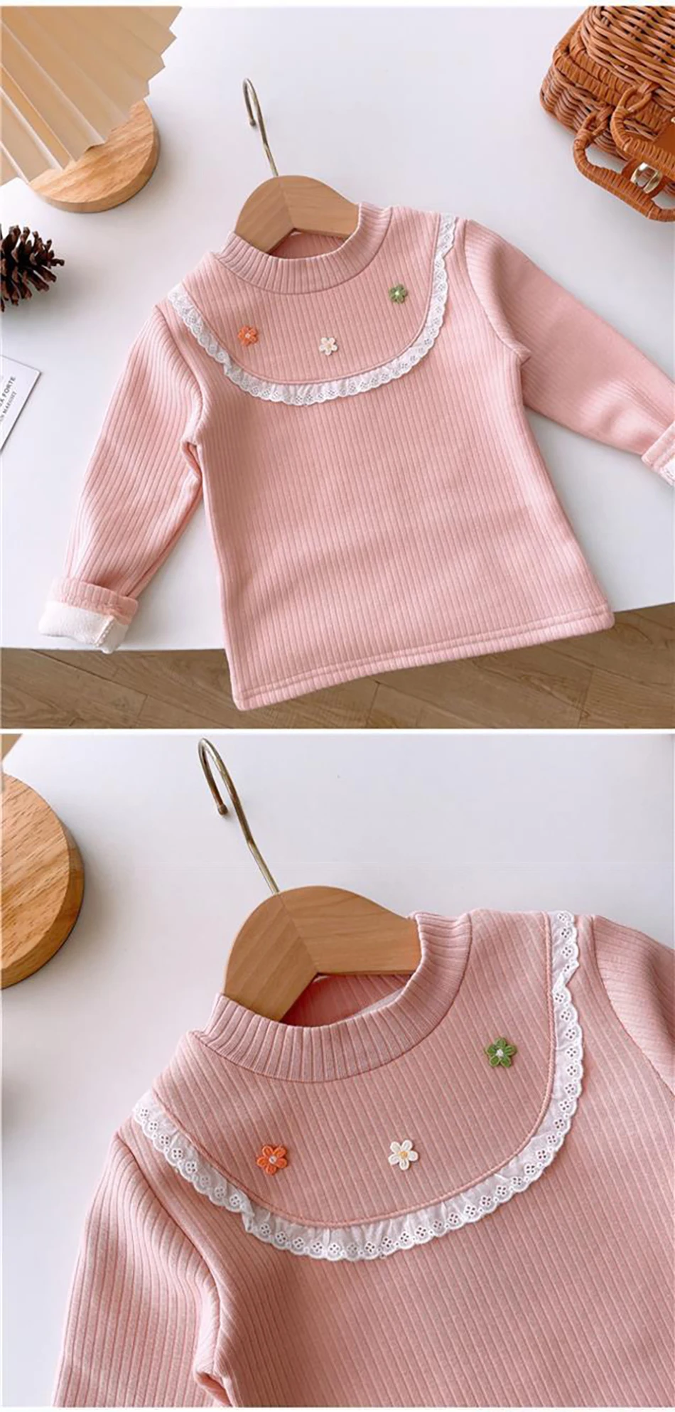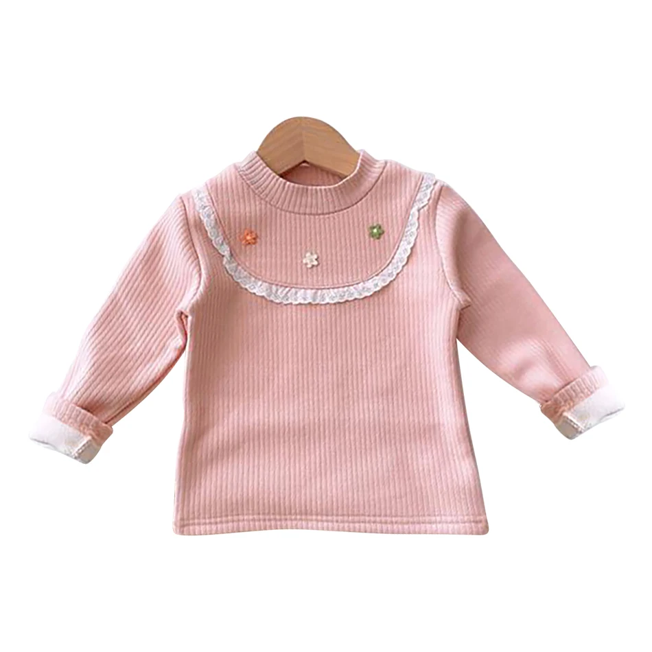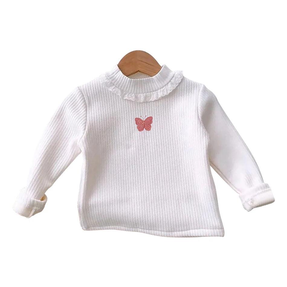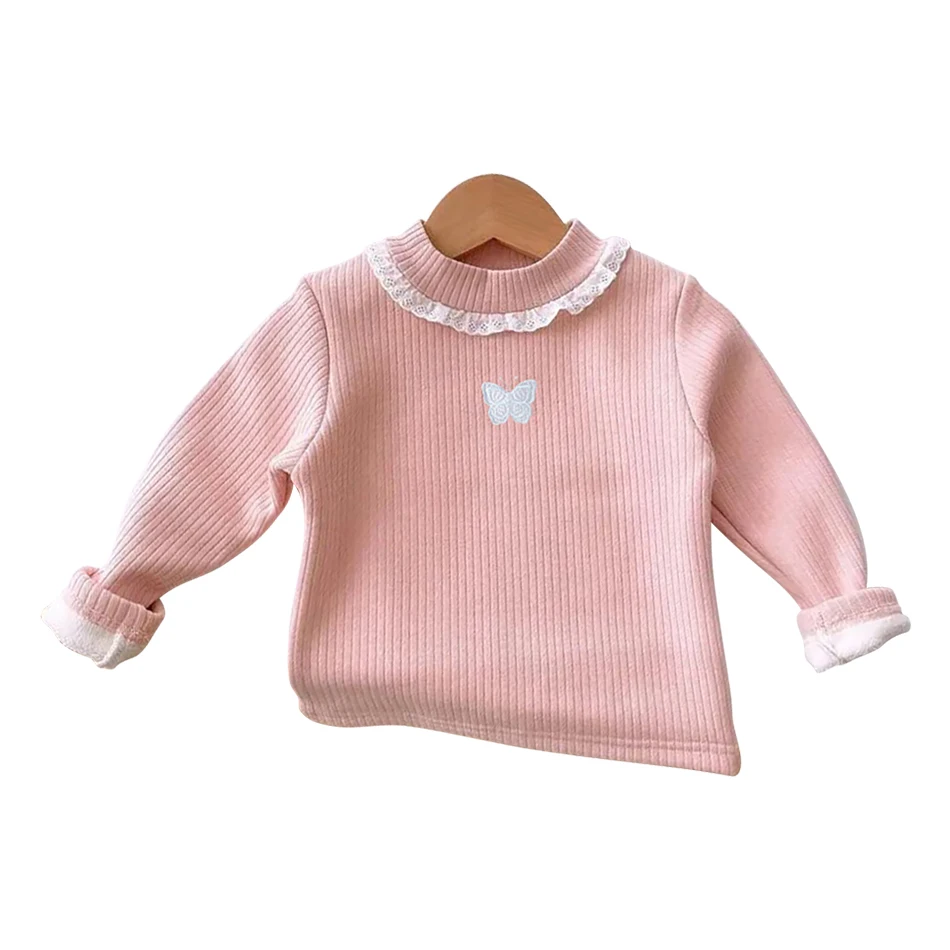 Nom : T-shirts à manches longues doublés en peluche pour filles, confortables et chics, automne et hiver. T-shirts à imprimé papillon confortables et polyvalents pour filles