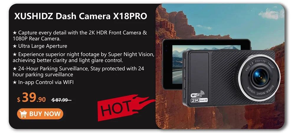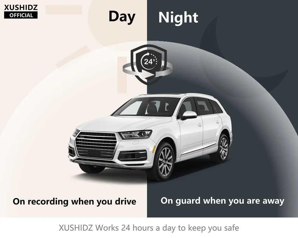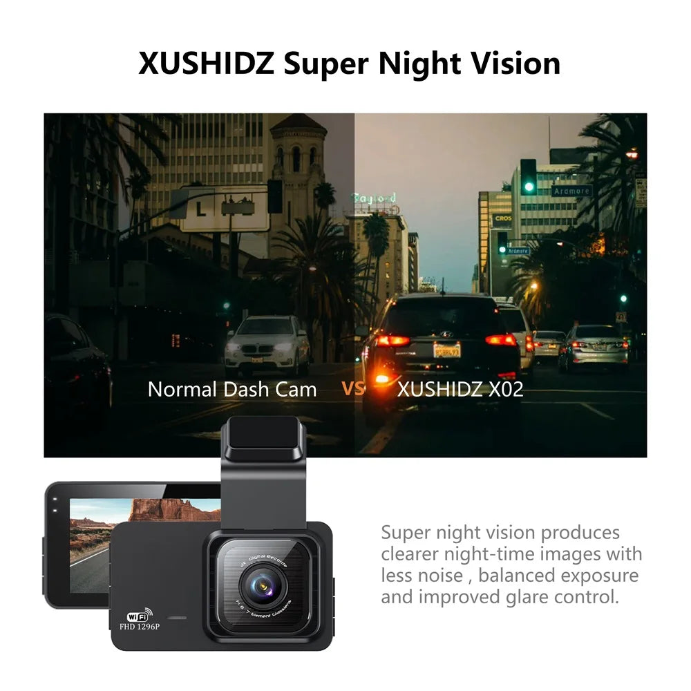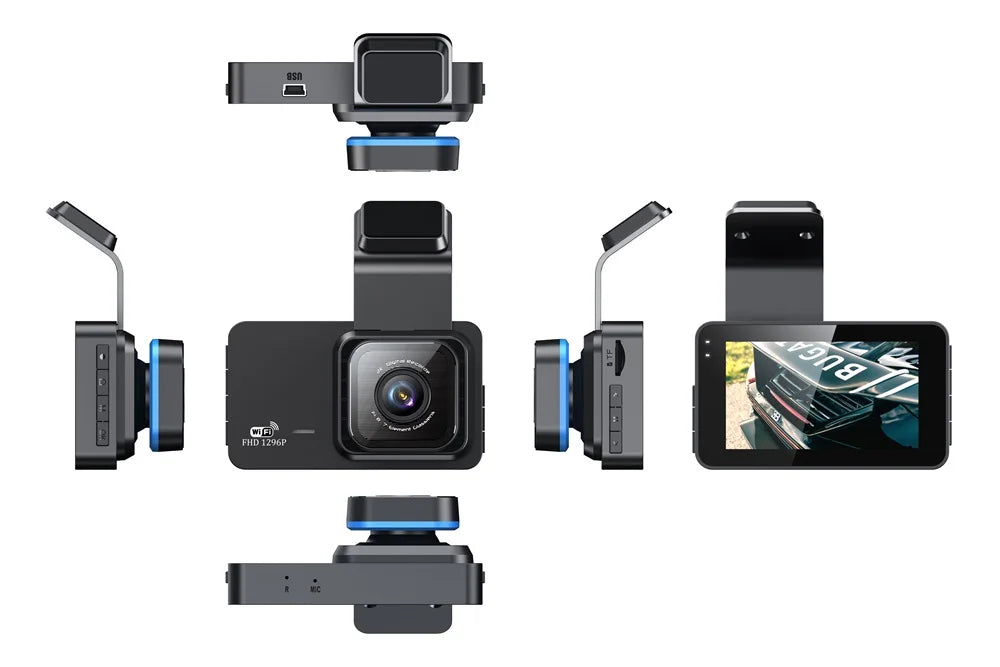 Caméra de tableau de bord avec caméra de stationnement DVR à double canal et vision nocturne, capteur G et WIFI