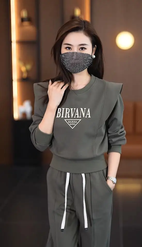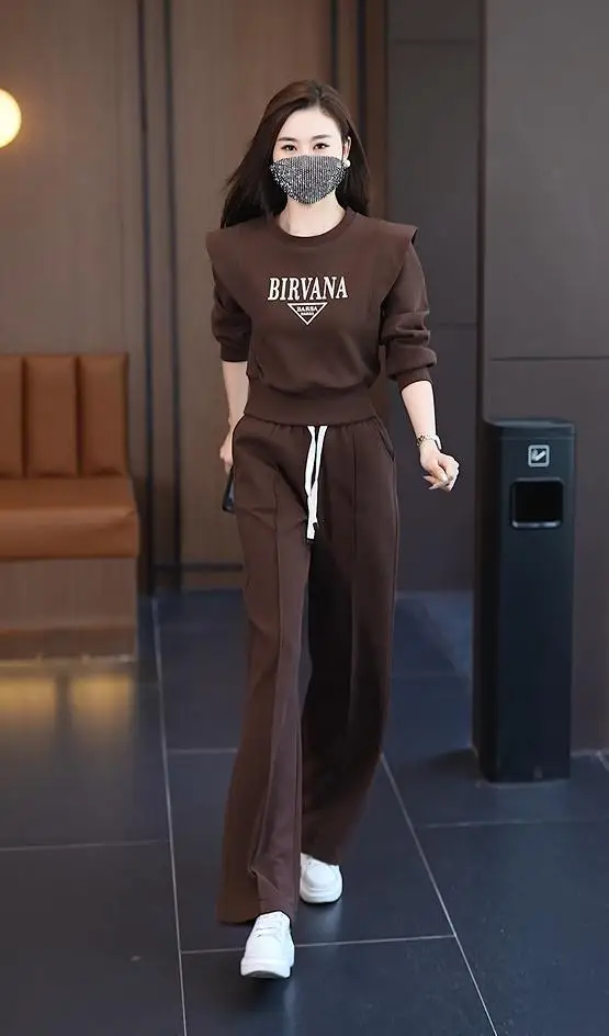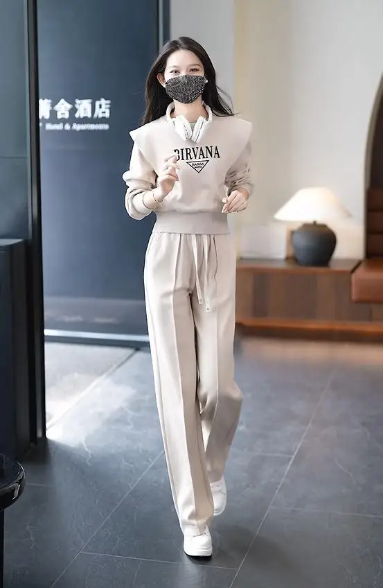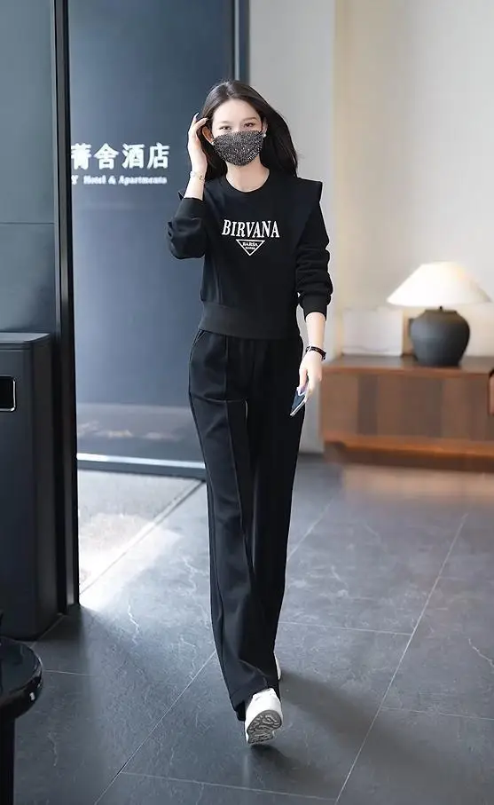 Costume de sport de loisirs pour femmes, nouvelle mode Slim, course à pied, ample, manches longues, haut court, pantalon, ensemble 2 pièces, automne hiver 2023
