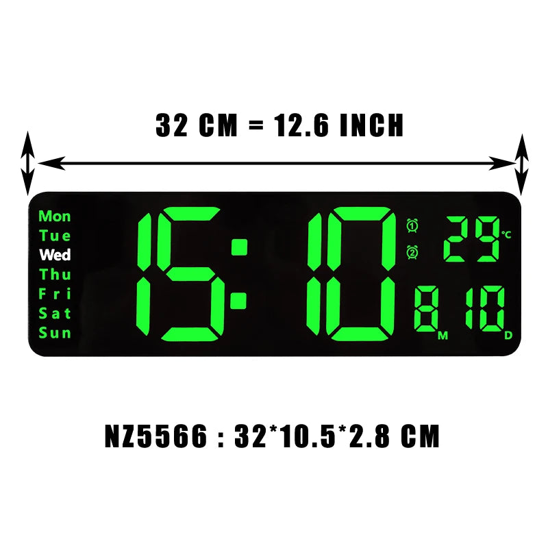 Grande horloge murale numérique à LED avec double alarme et affichage de la température
