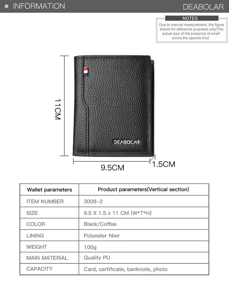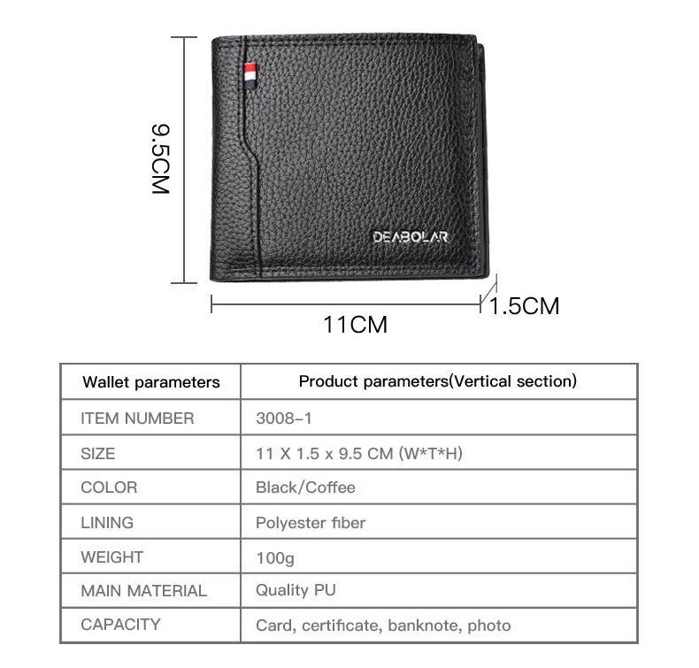 - Longueur du portefeuille : court (4 à 16 pouces)