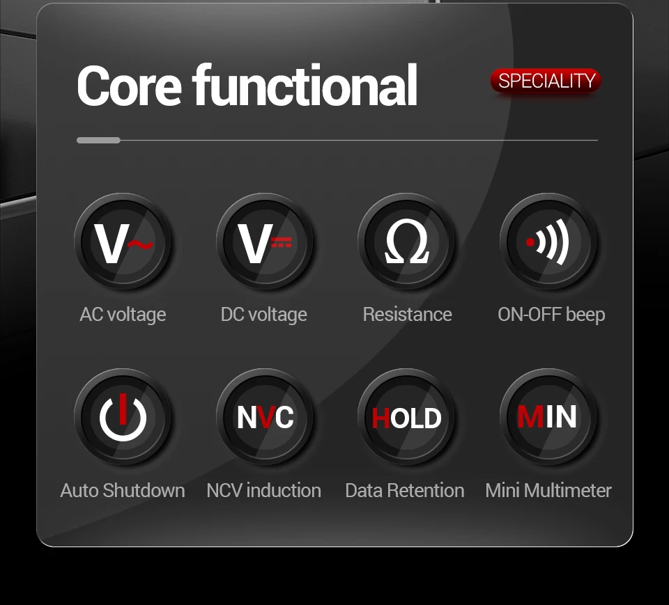 Le compteur peut mesurer la tension continue, la tension alternative, la connectivité de résistance et la capacité, avec une fonction de détection de tension sans contact, rappeler en temps opportun aux utilisateurs de prêter attention au fonctionnement de la sécurité, afin que les utilisateurs utilisent une utilisation plus sûre et assurée.