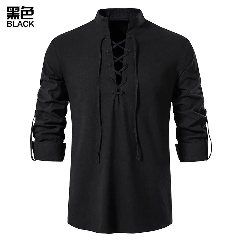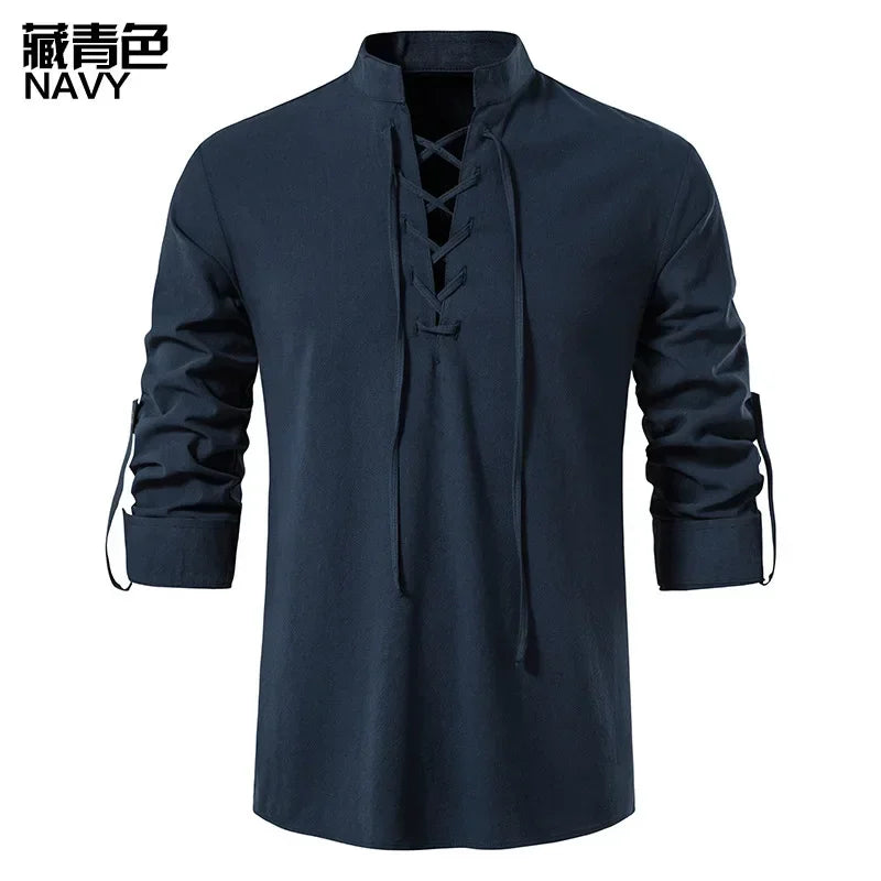 Haut décontracté à lacets et col en V à manches longues pour hommes