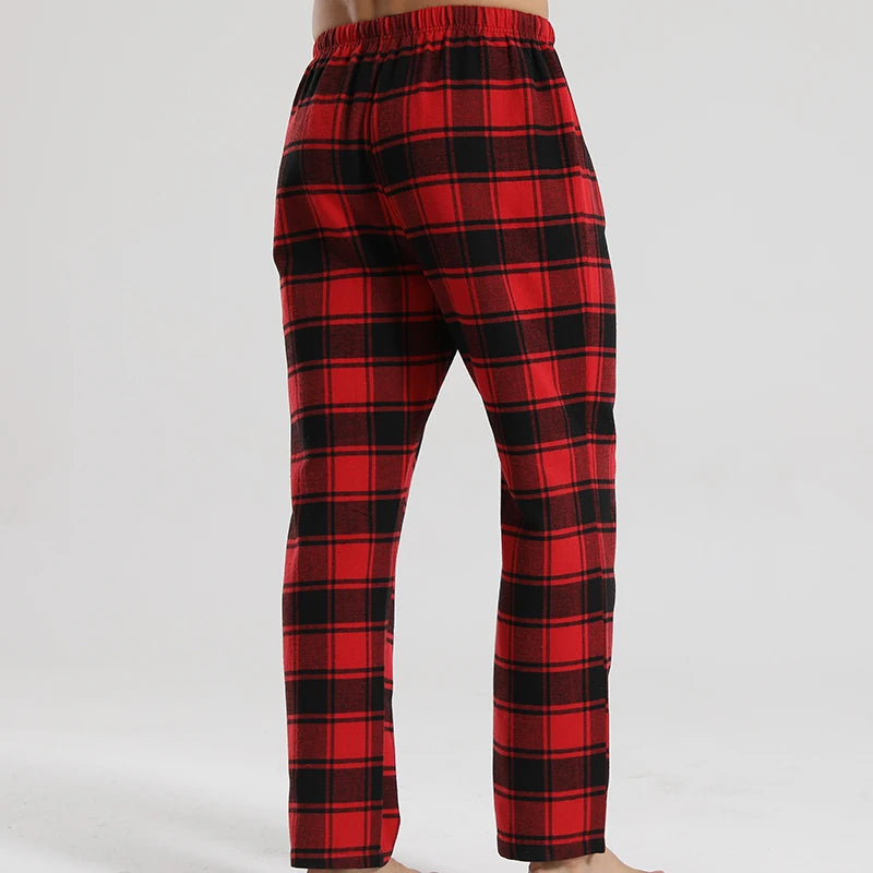 Pantalon de pyjama à carreaux rouge pour homme, doux et confortable, avec taille élastique - Vêtements de nuit à carreaux
