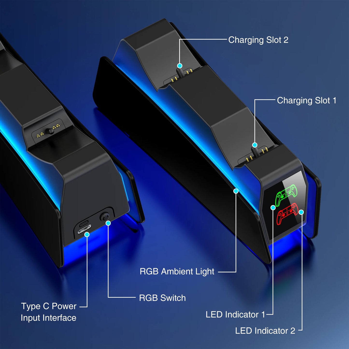 Chargeur de contrôleur PS5 Station de charge rapide RGB pour contrôleurs de jeu sans fil PlayStation5 Support de charge Gamepad