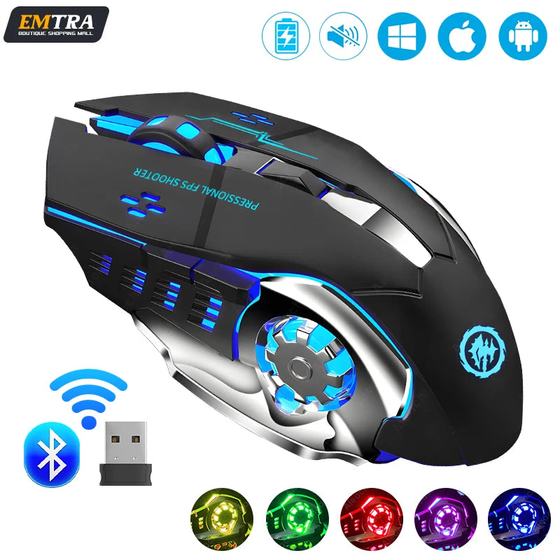 Souris de jeu sans fil rechargeable avec Bluetooth silencieux