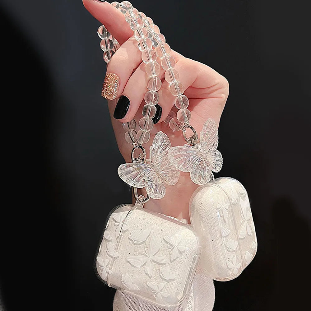 Étui de protection pour écouteurs Bluetooth Apple 2e génération 1/2/3 avec imprimé papillon rose scintillant adapté aux Airpods Pro2