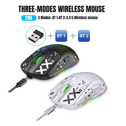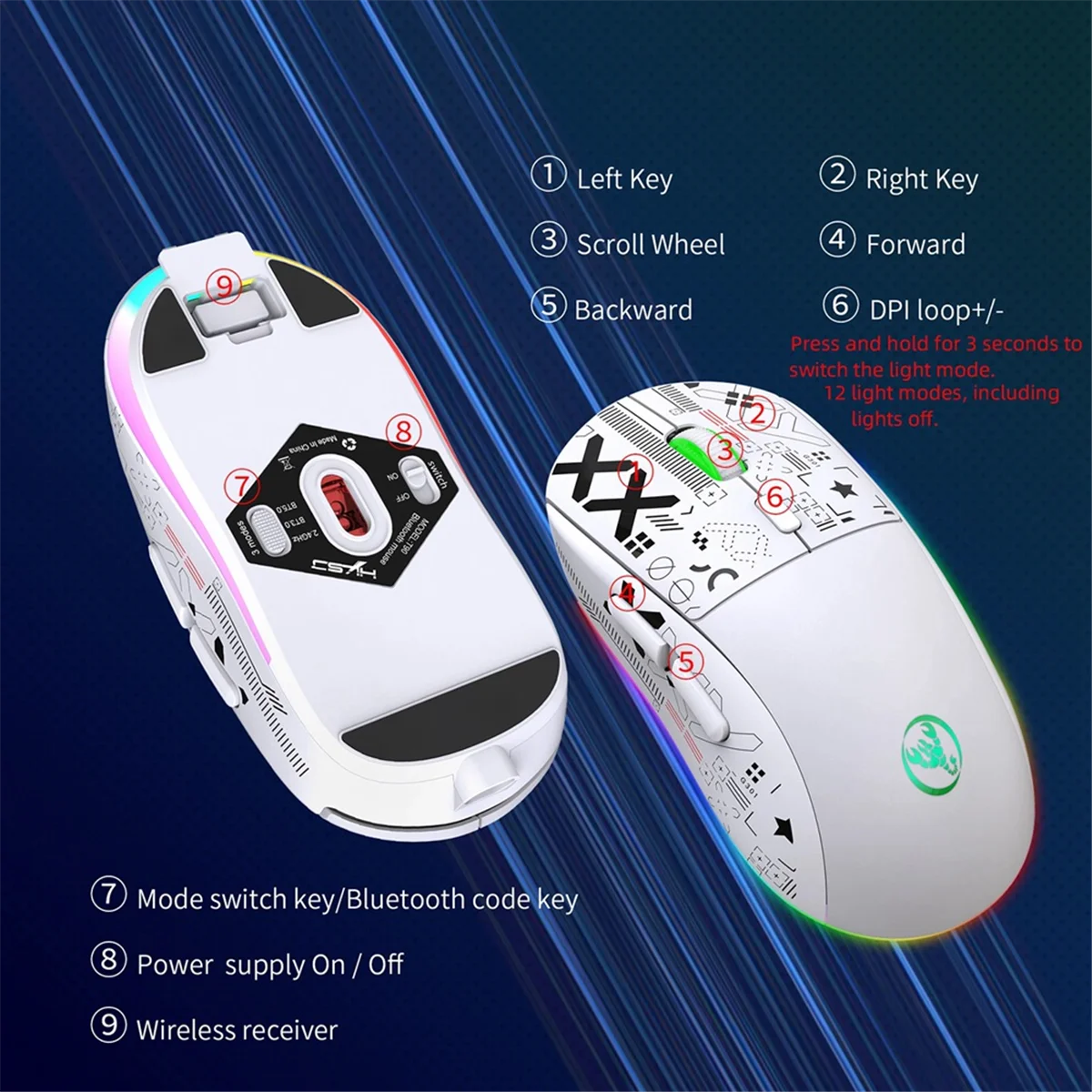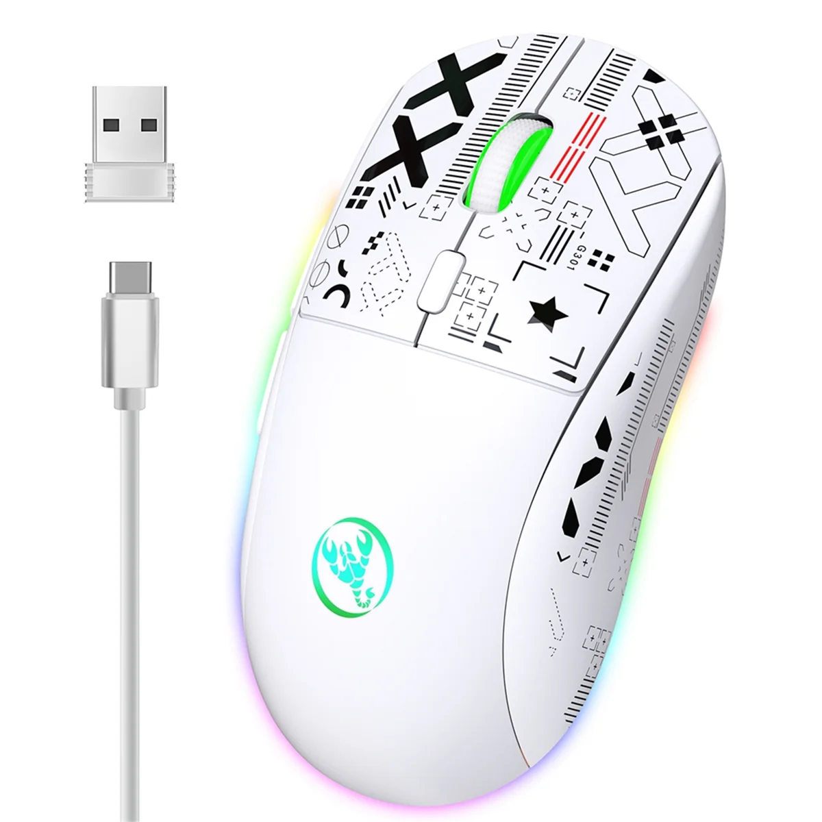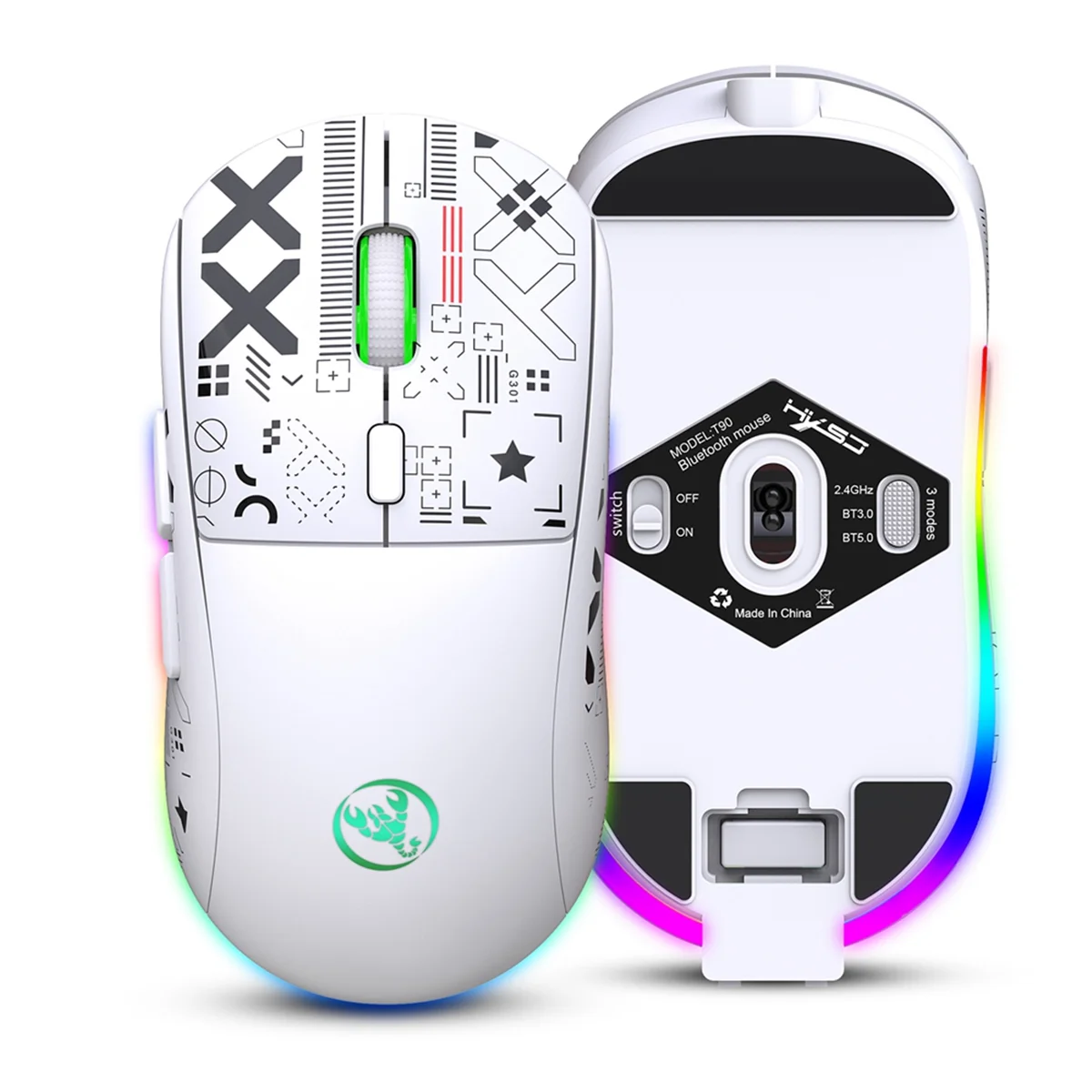 Souris mécanique sans fil HXSJ T90 2,4 GHz, souris de jeu RGB, ergonomique, 3 600 DPI, 11 modes d'éclairage RGB, blanche, DY