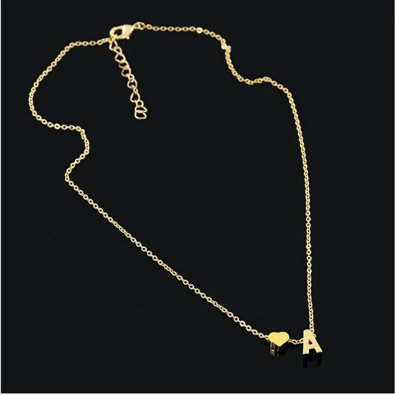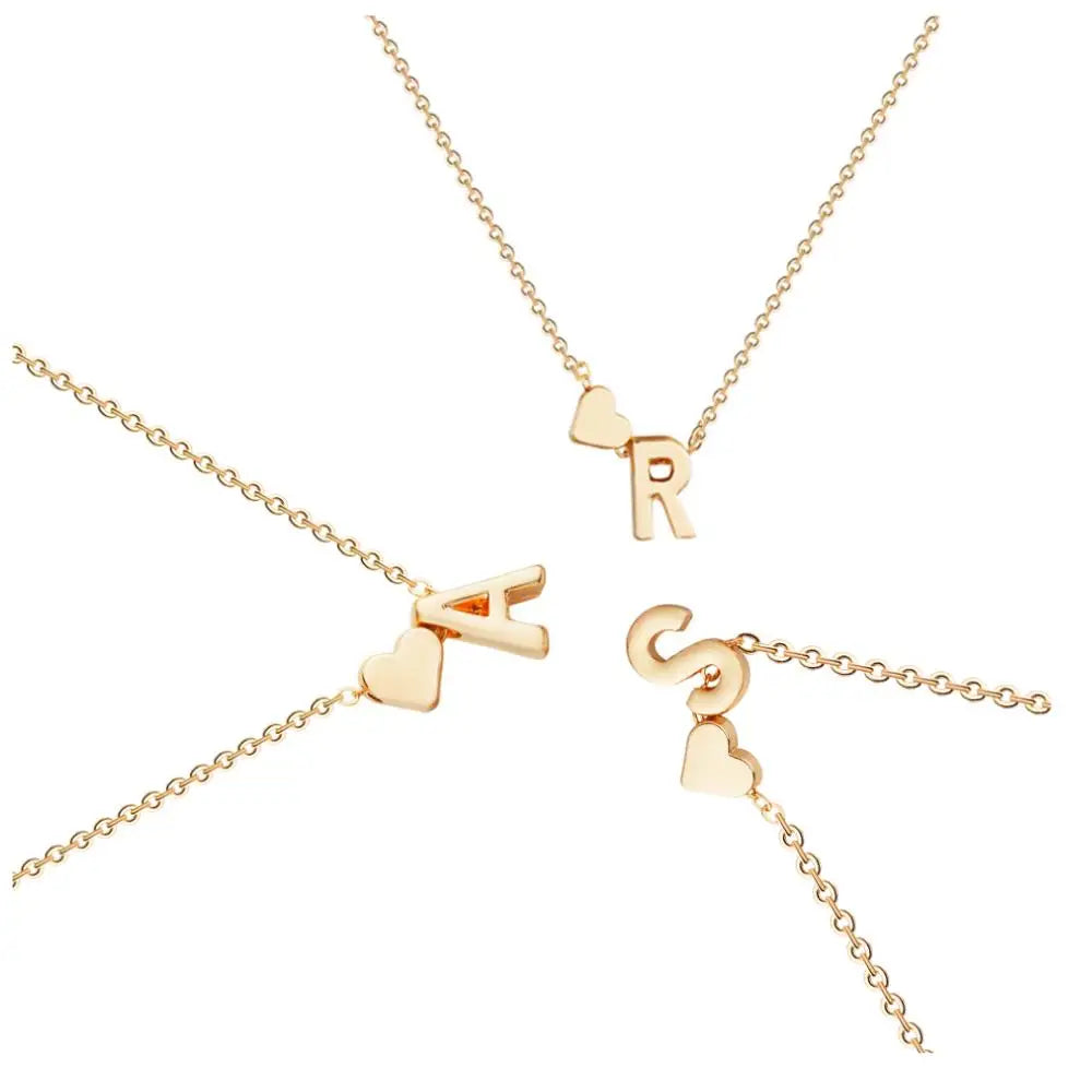 Collier avec initiale en forme de petit cœur – Pendentif délicat en forme de lettre en or ou en argent pour femme