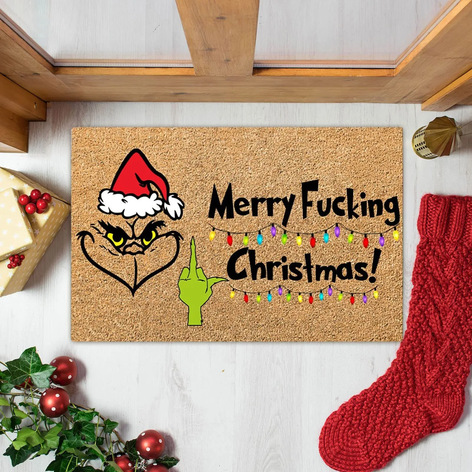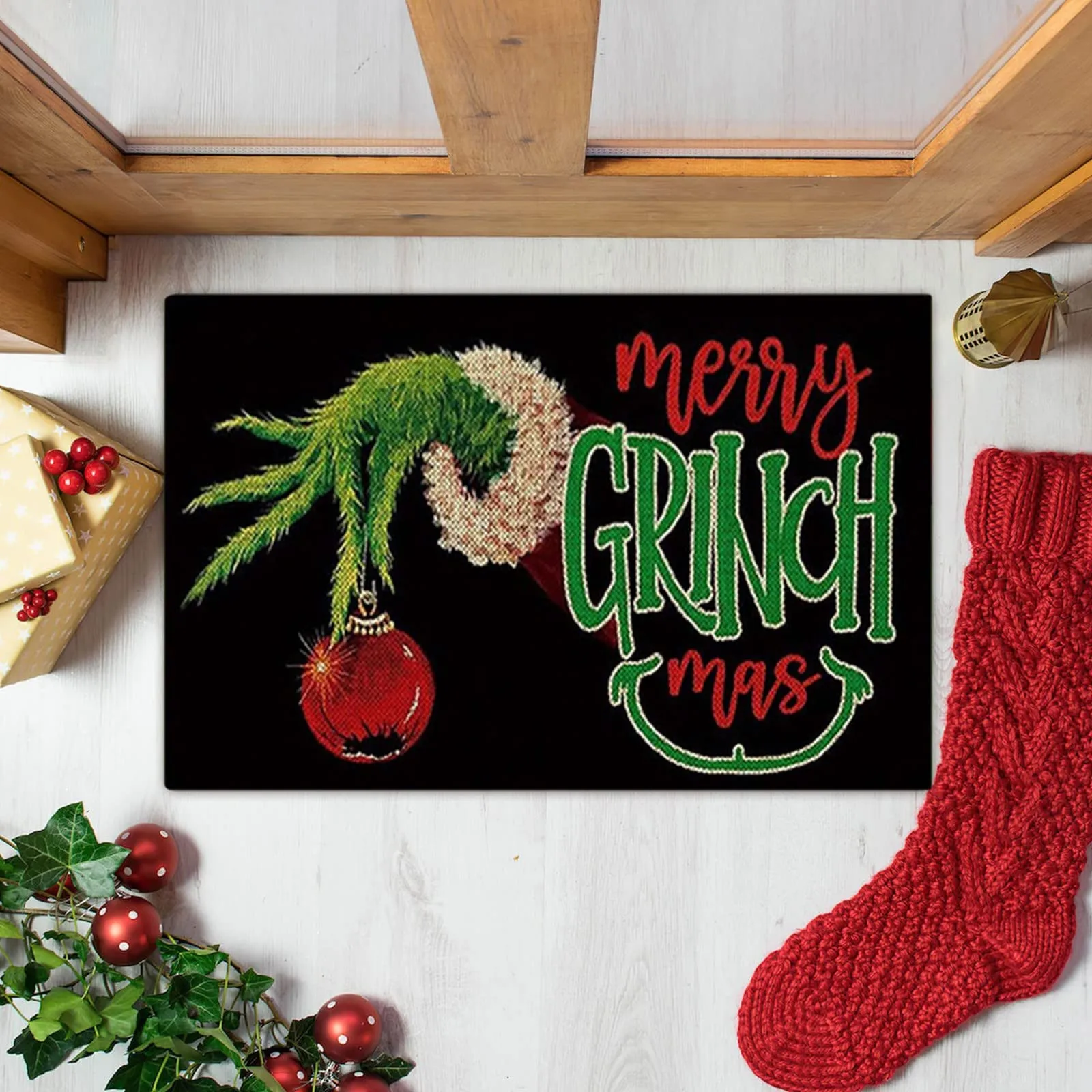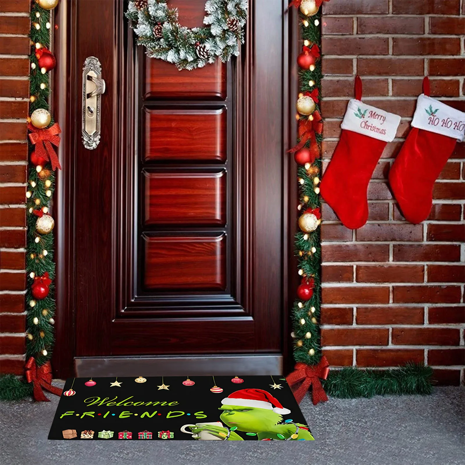 Paillasson de bienvenue de Noël - Tapis d'entrée antidérapant et lavable