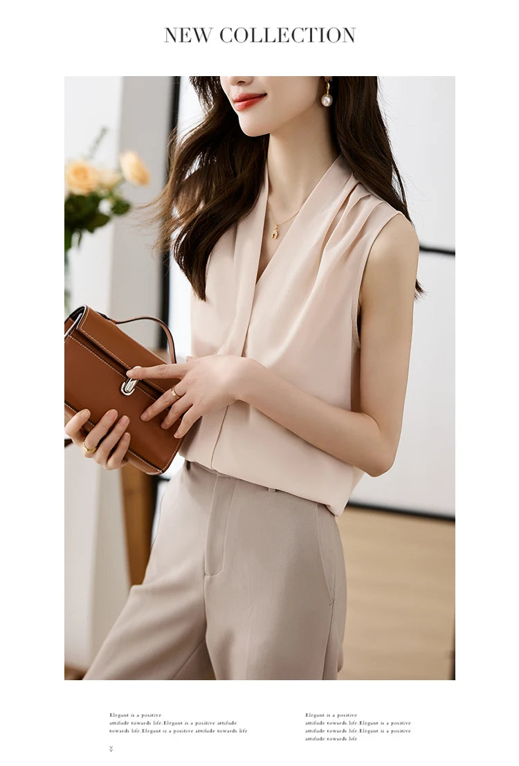 Chemisiers de bureau sans manches en mousseline de soie pour femmes