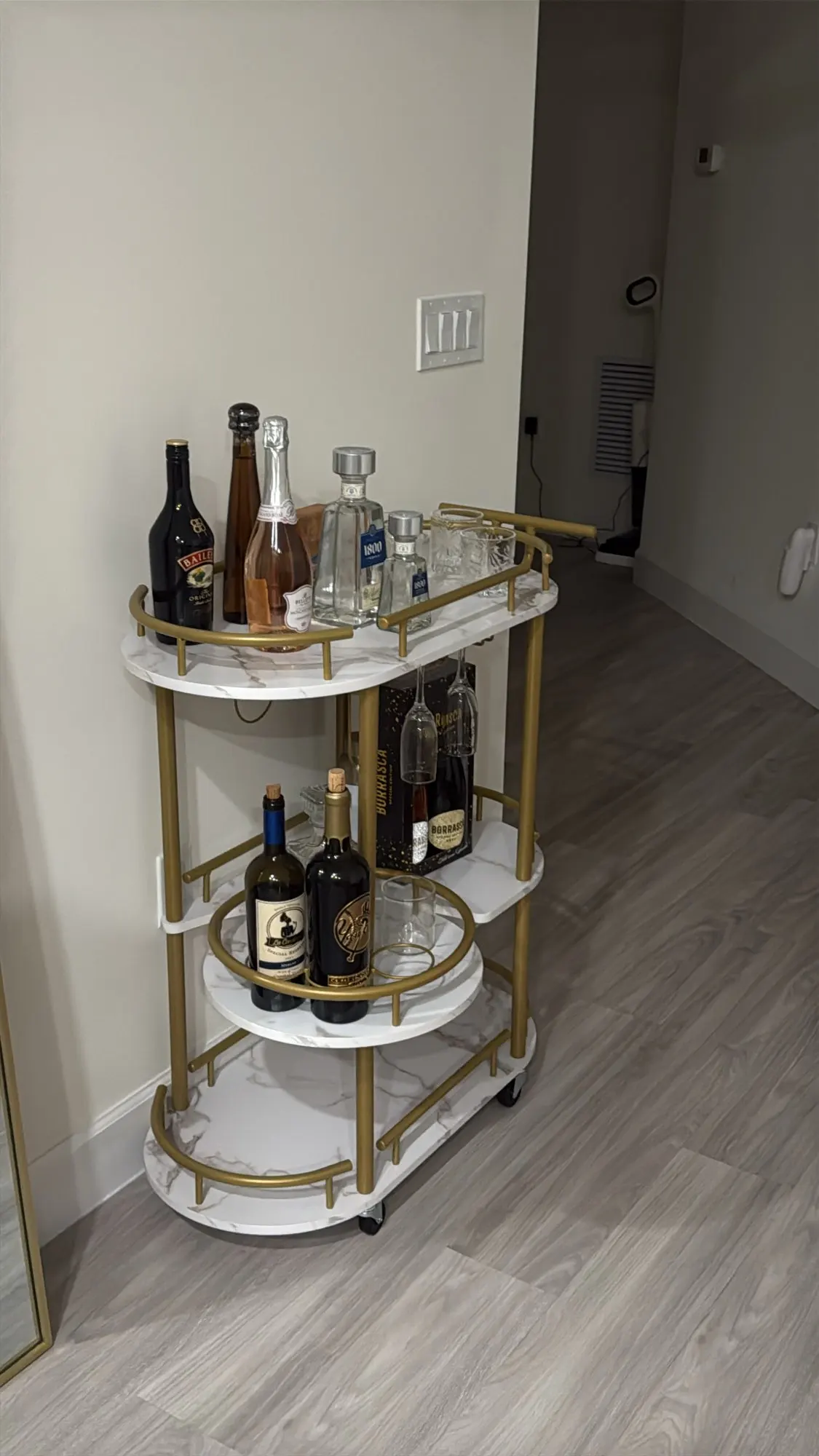 2-Tier Rolling Bar Cart & Lockable Wheels
