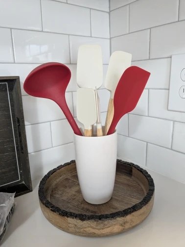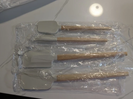 It arrived before the estimated date. The spatulas are as described in the publication. Satisfied with my order.