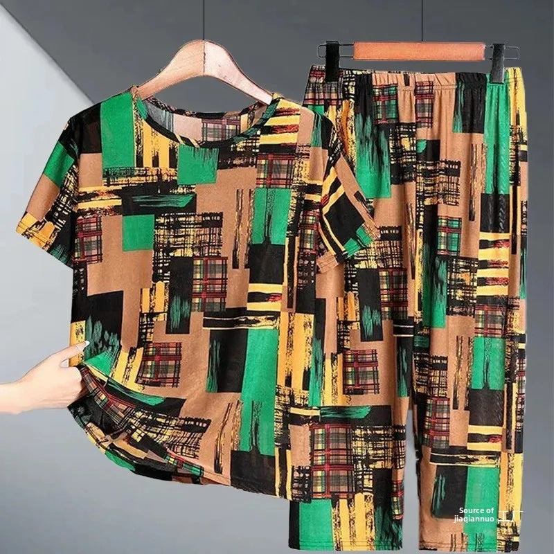 2PCS Women Summer Half Sleeve Blouse Tracksuit