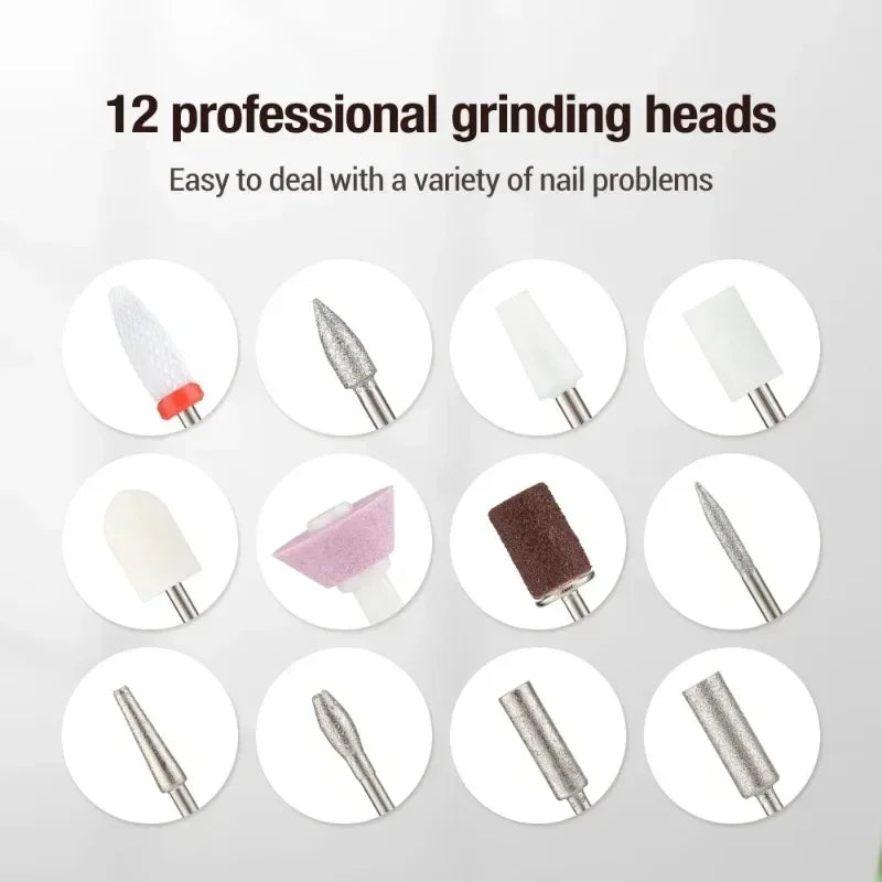 3-Gear Electric Nail Drill with Light - 4-in-1 Kit