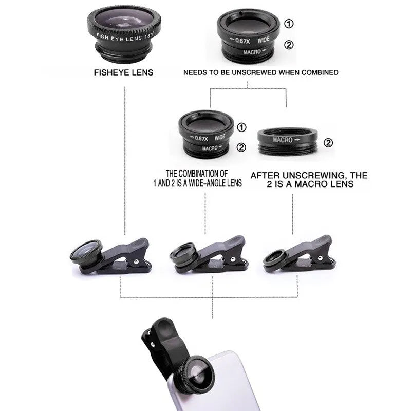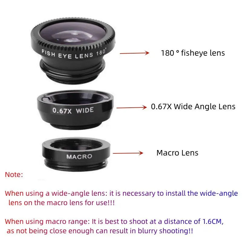 3-in-1 Fisheye Wide Angle Macro Mobile Phone Lens