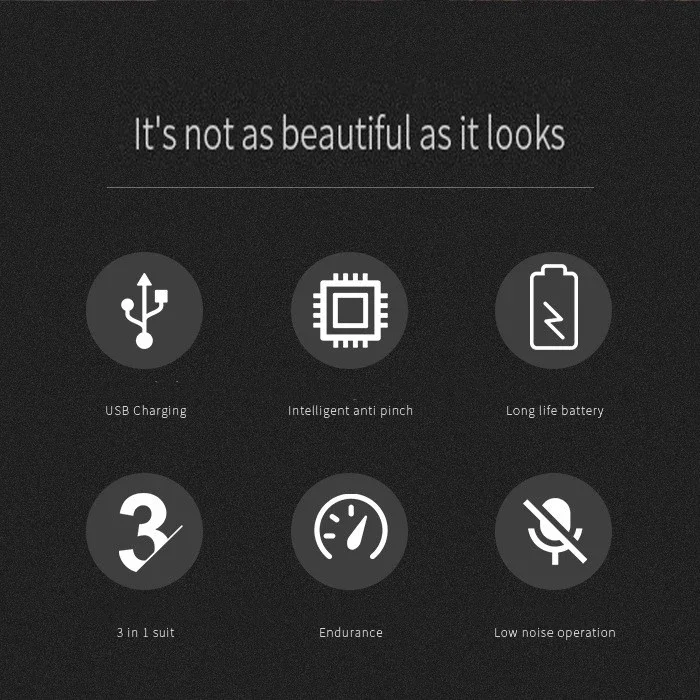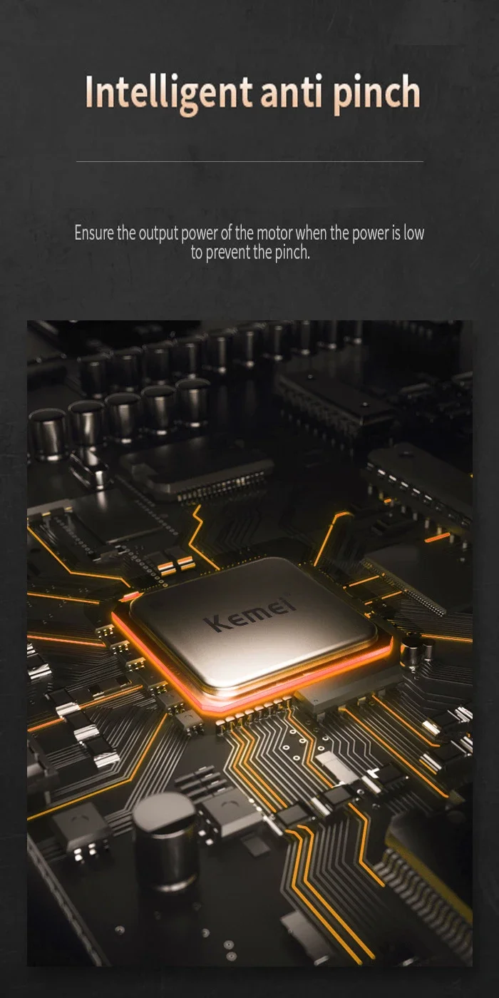 Function: Electric length adjustment,wet haircut,dry haircut,Automatic power selection based on bristle density,Washing knives under water,fast charging,Charging indication