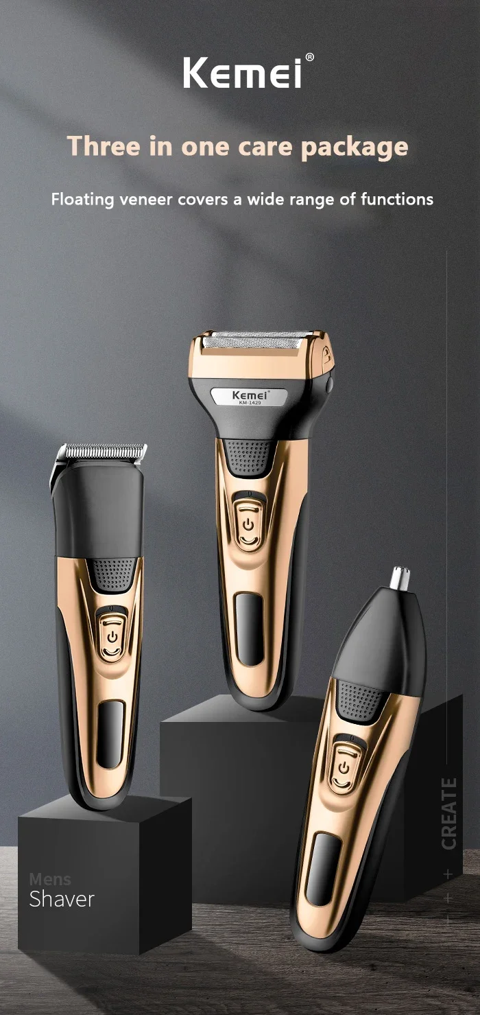 3-in-1 Rechargeable Electric Shaver Grooming Kit for Men