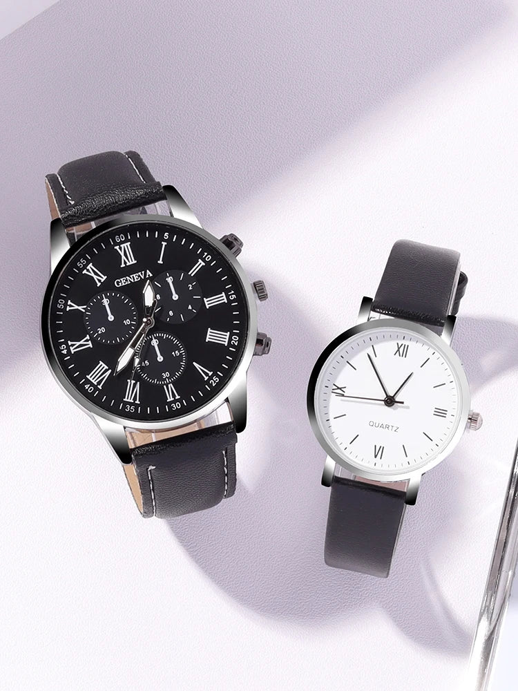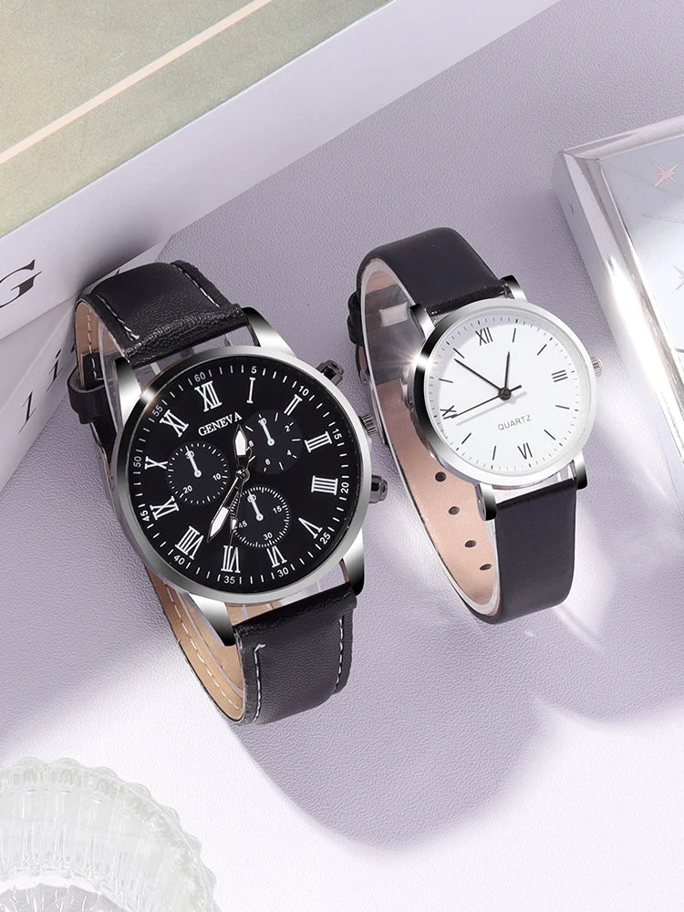 4pcs Personalized Men and Women Couple Belt Quartz Watch Paired Love Pendant Necklace