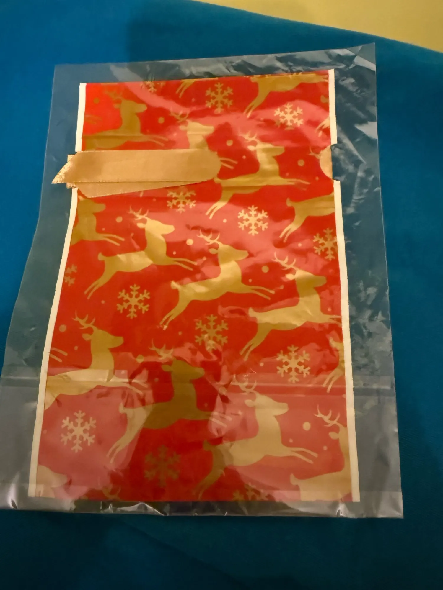 A cute foil pouch, smaller than expected (ordered the largest one, there are several sizes), but can be tightened at the top with a silk ribbon suitable for candies or small souvenirs.