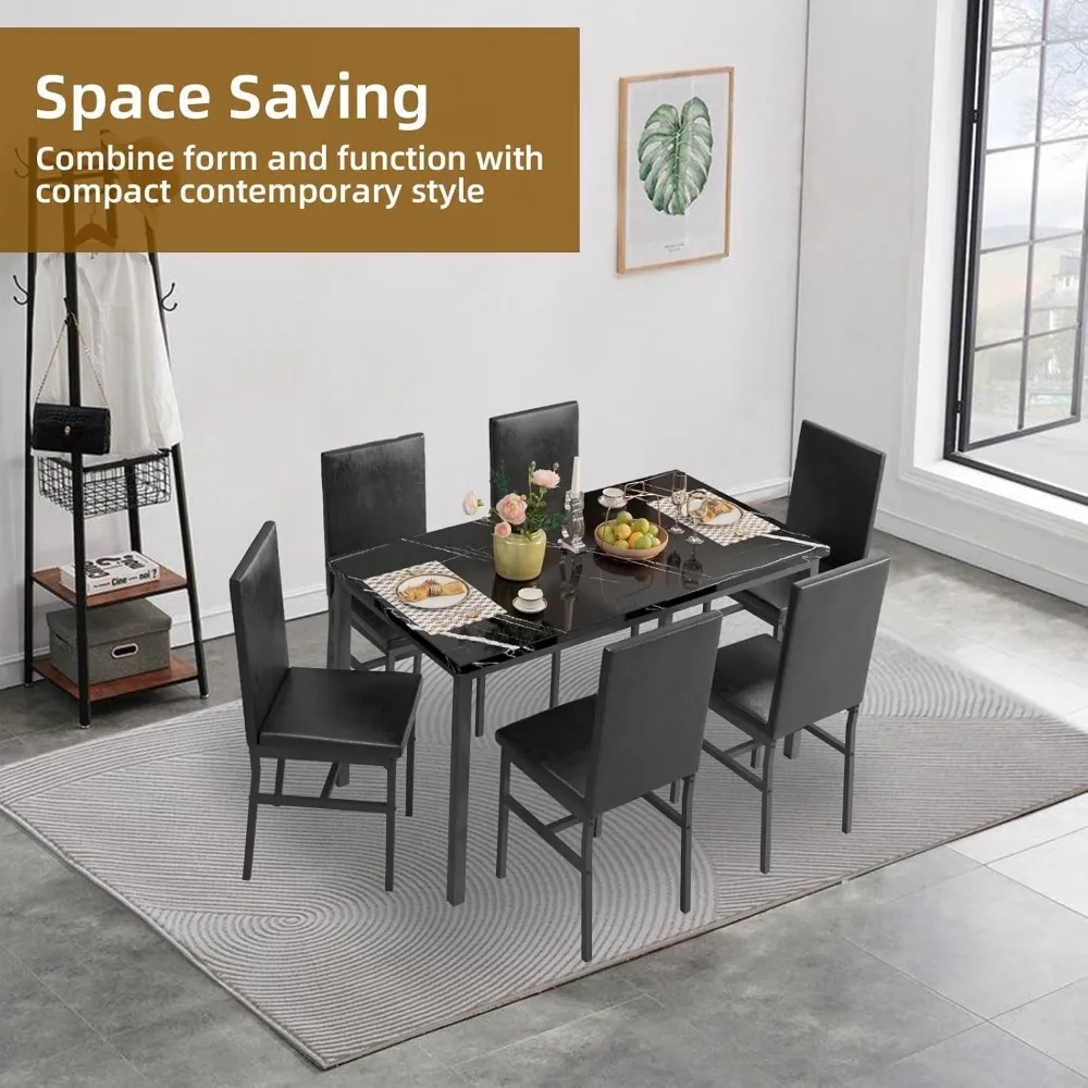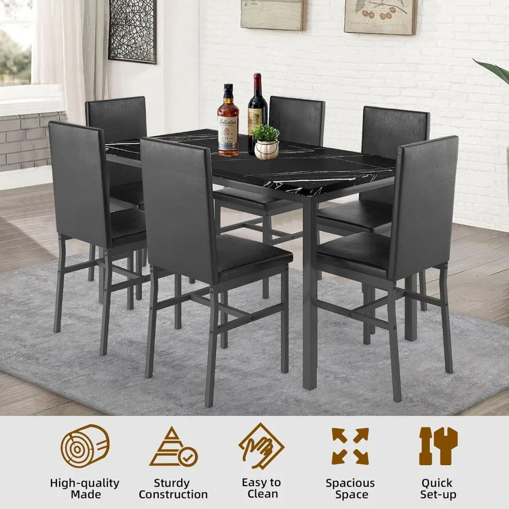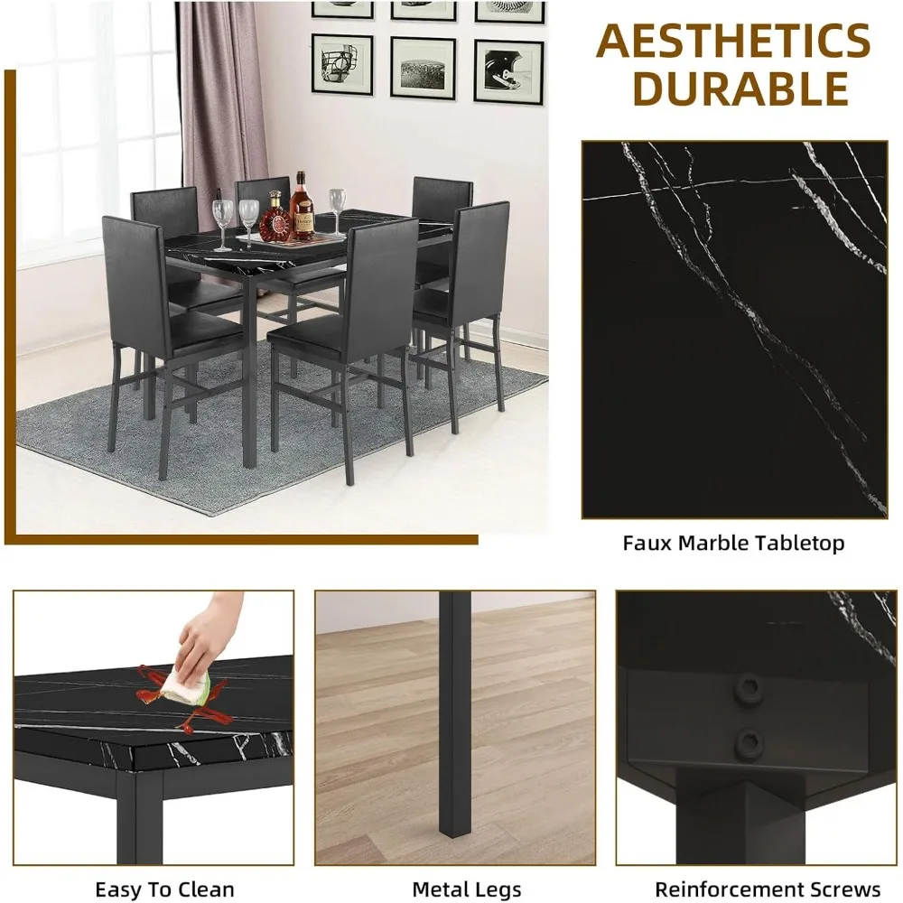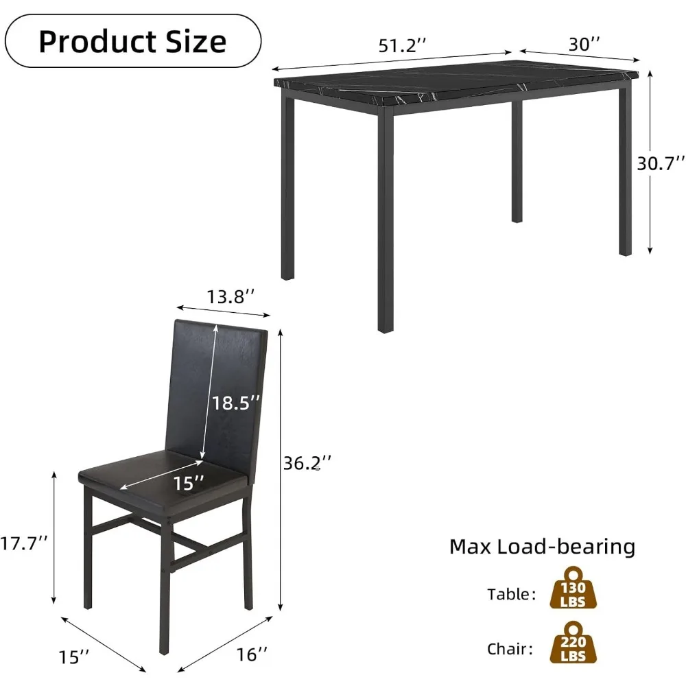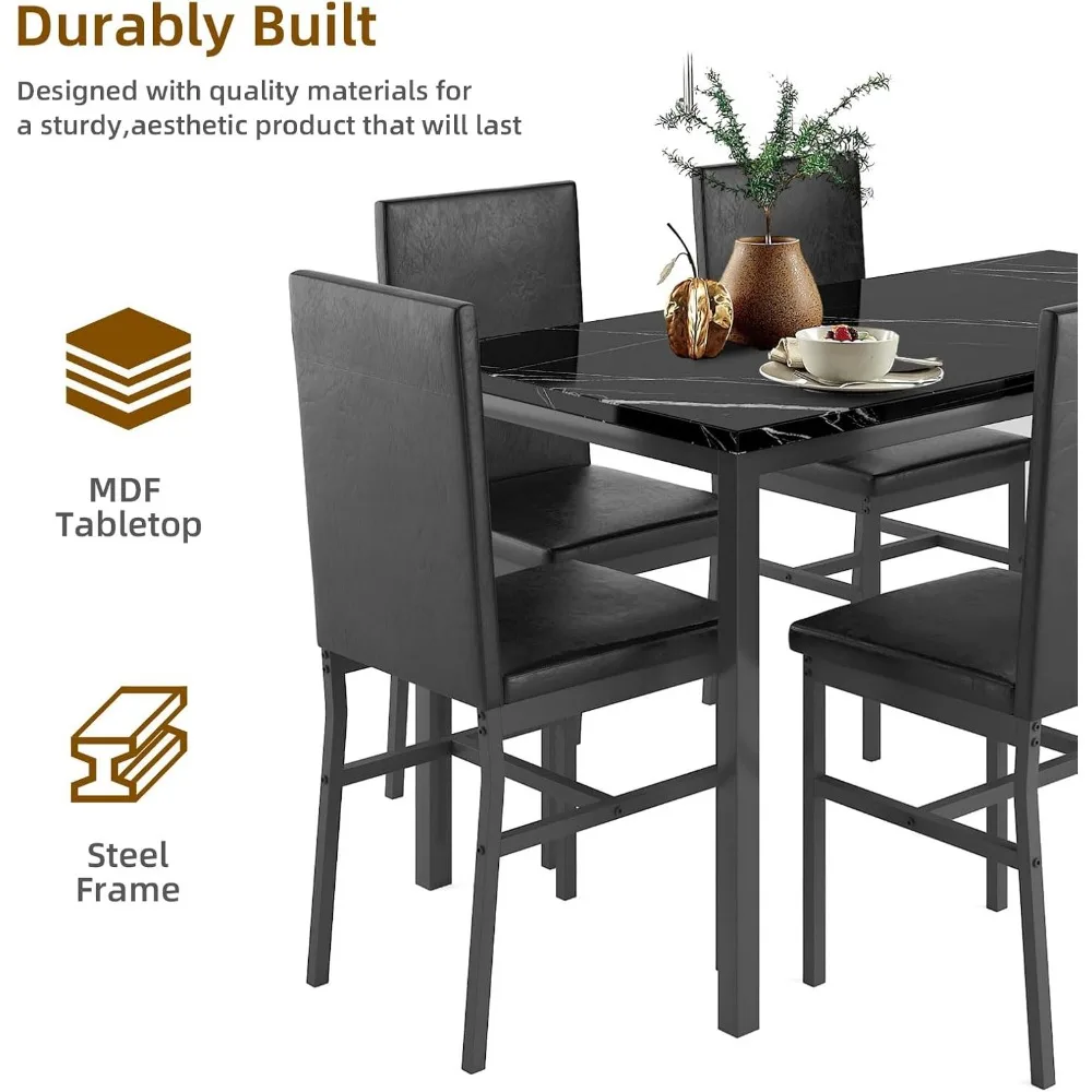 5-Piece Faux Marble Dining Set with 4 PU Chairs