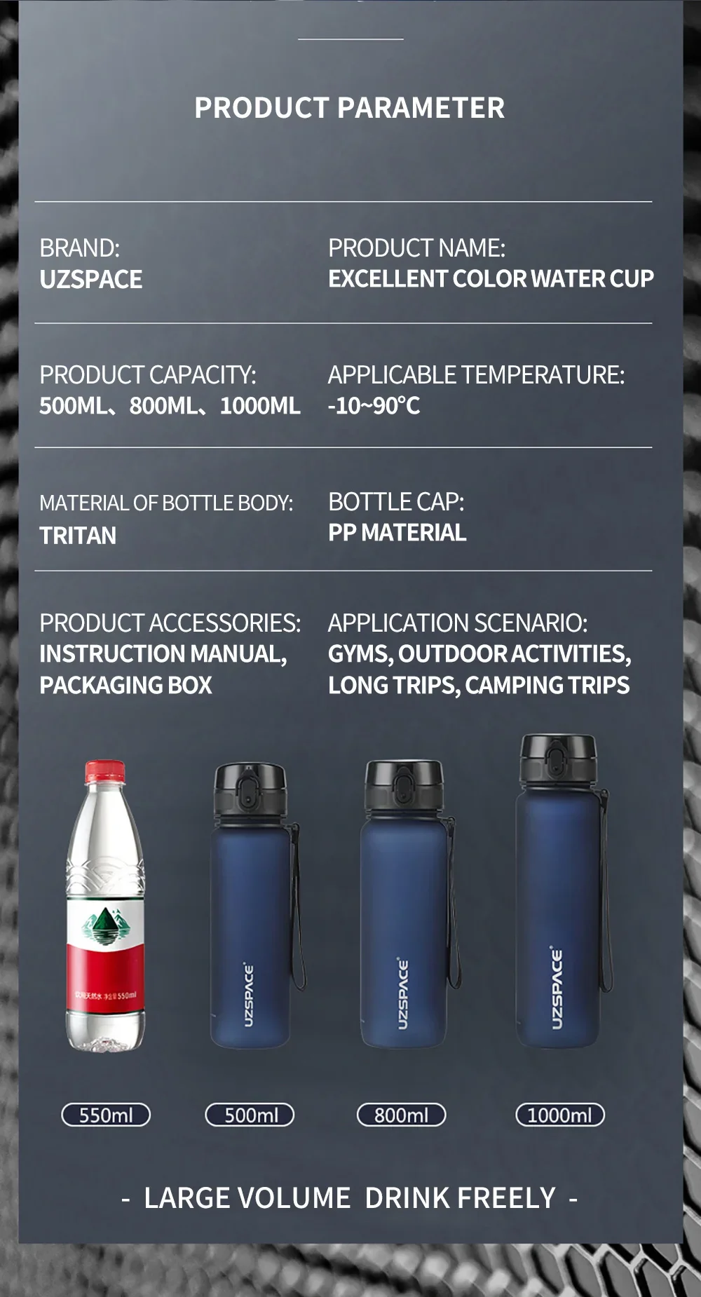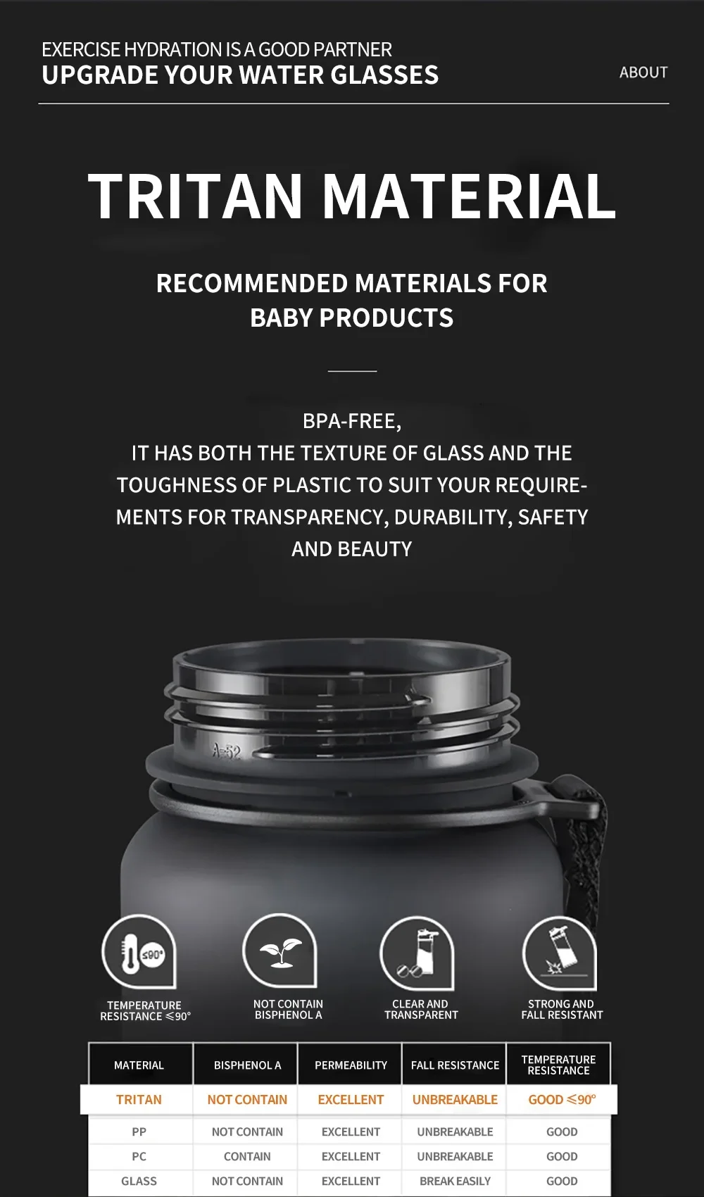 【100% SAFE & HEALTHY MATERIAL】Our 32 oz reusable water bottle made of food grade, reusable and eco-friendly Tritan material,100% BPA free and No-Toxic. Thanks to the TRITAN plastic, you'll taste whatever you put in this BPA Free tritan plastic water bottle just the way it was meant to be - no funky odors or metallic tastes.
