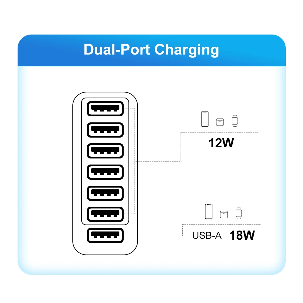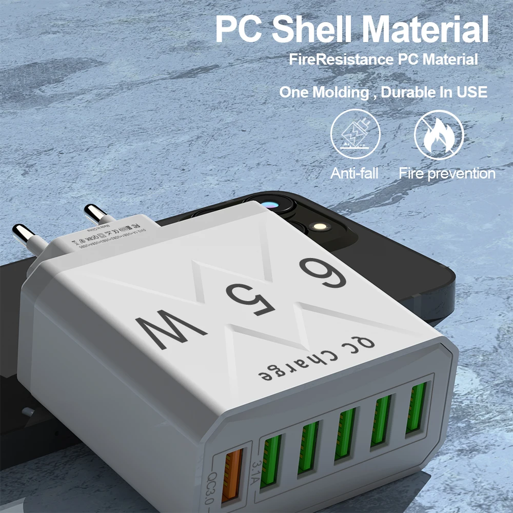 65W Mobile Phone 6 Ports Fast Charger USB Charger Fast Charging Adapter 6-in-1 QC3.0 US EU KR Plug Quick Wall Charger for iPhone