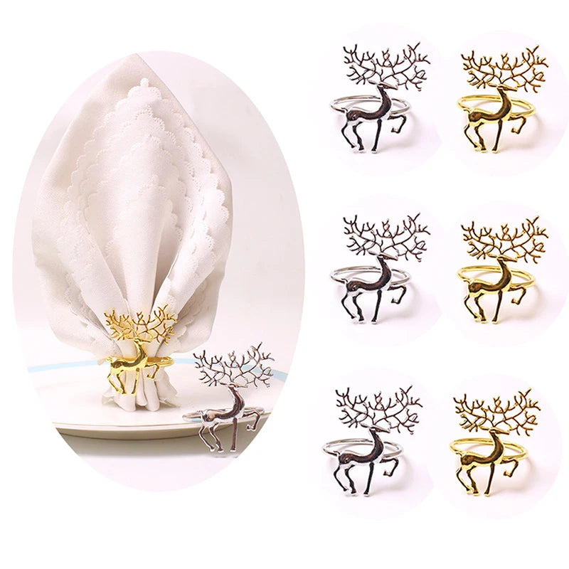 6PC Iron Art Deer Napkin Ring Christmas Elk Towel Holder