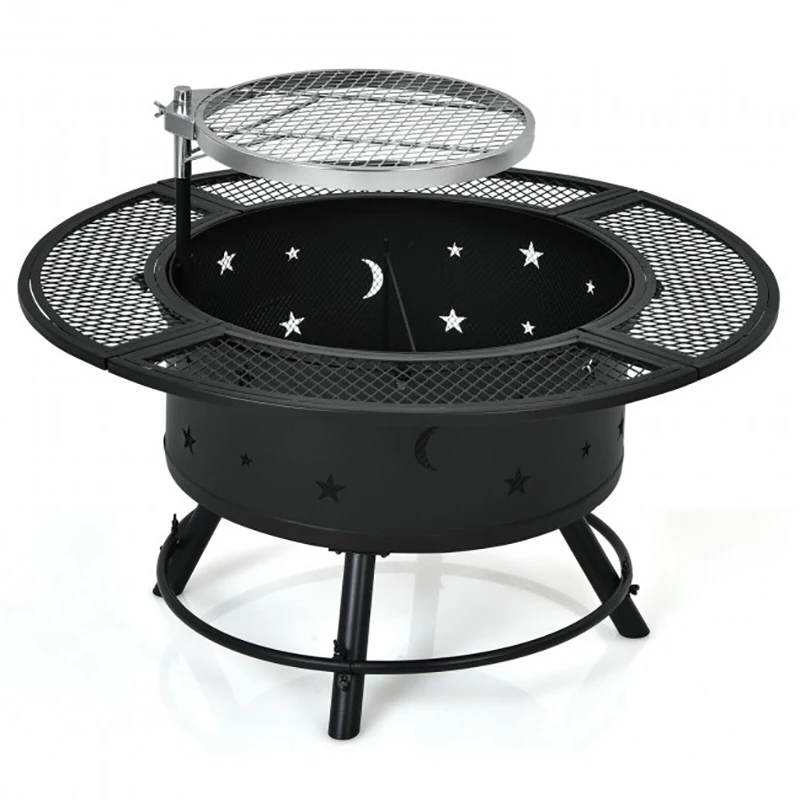 - Charcoal pan easily converts this fire pit to a traditional grill.