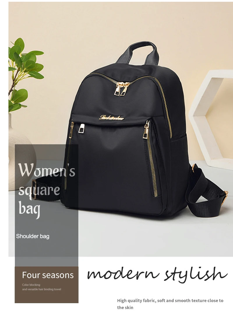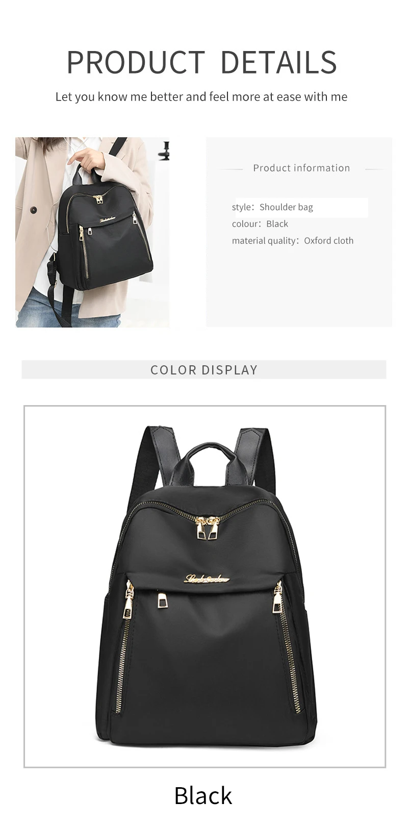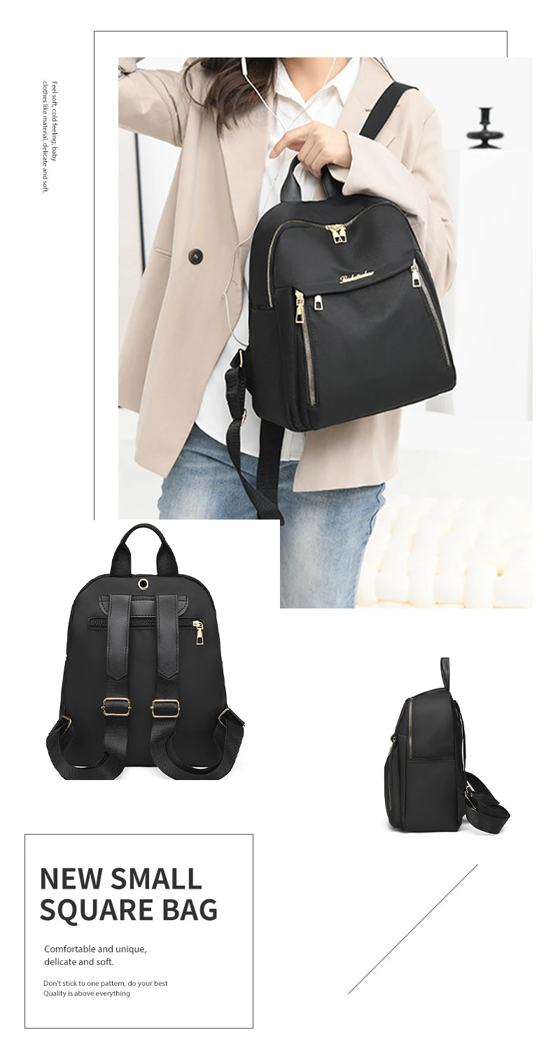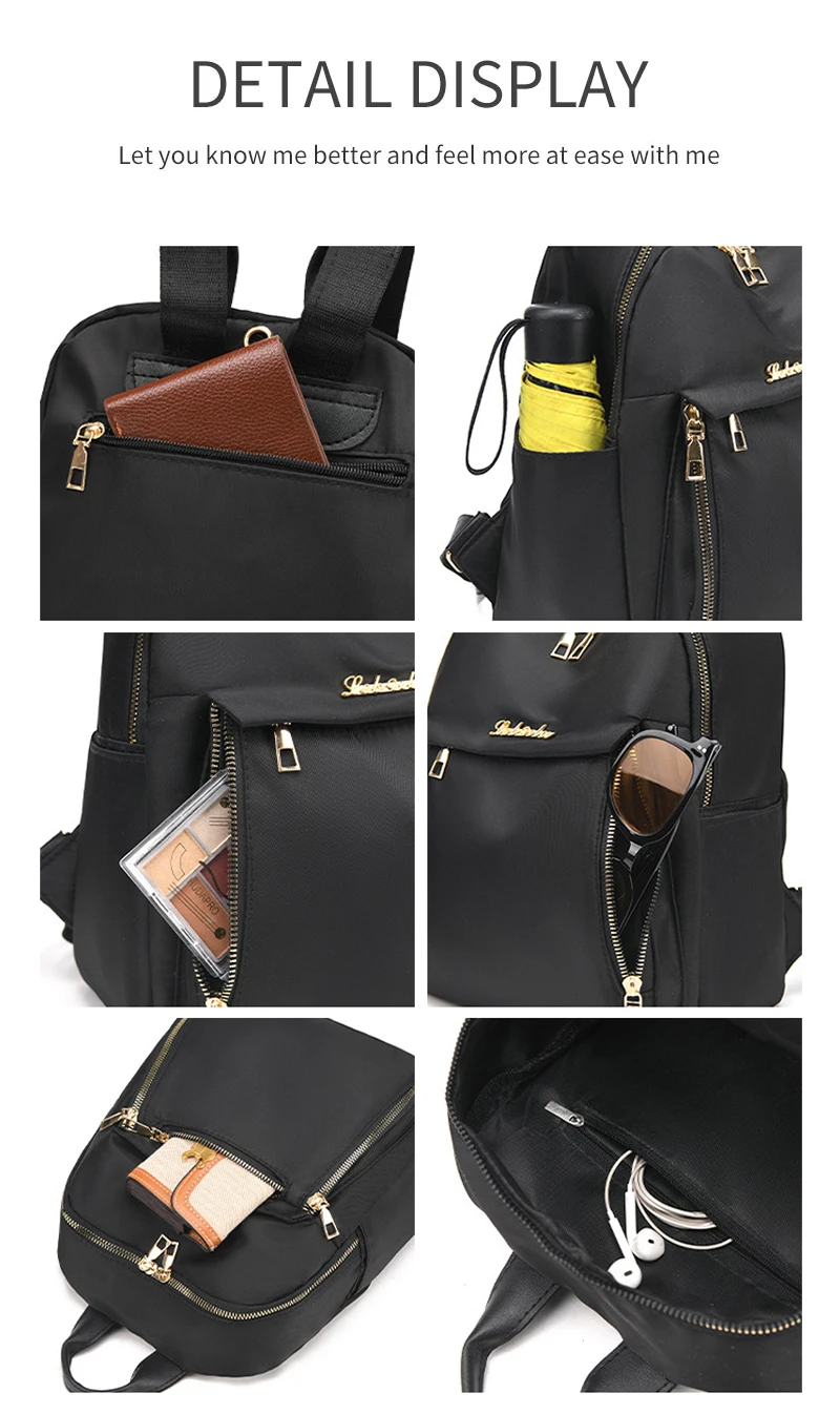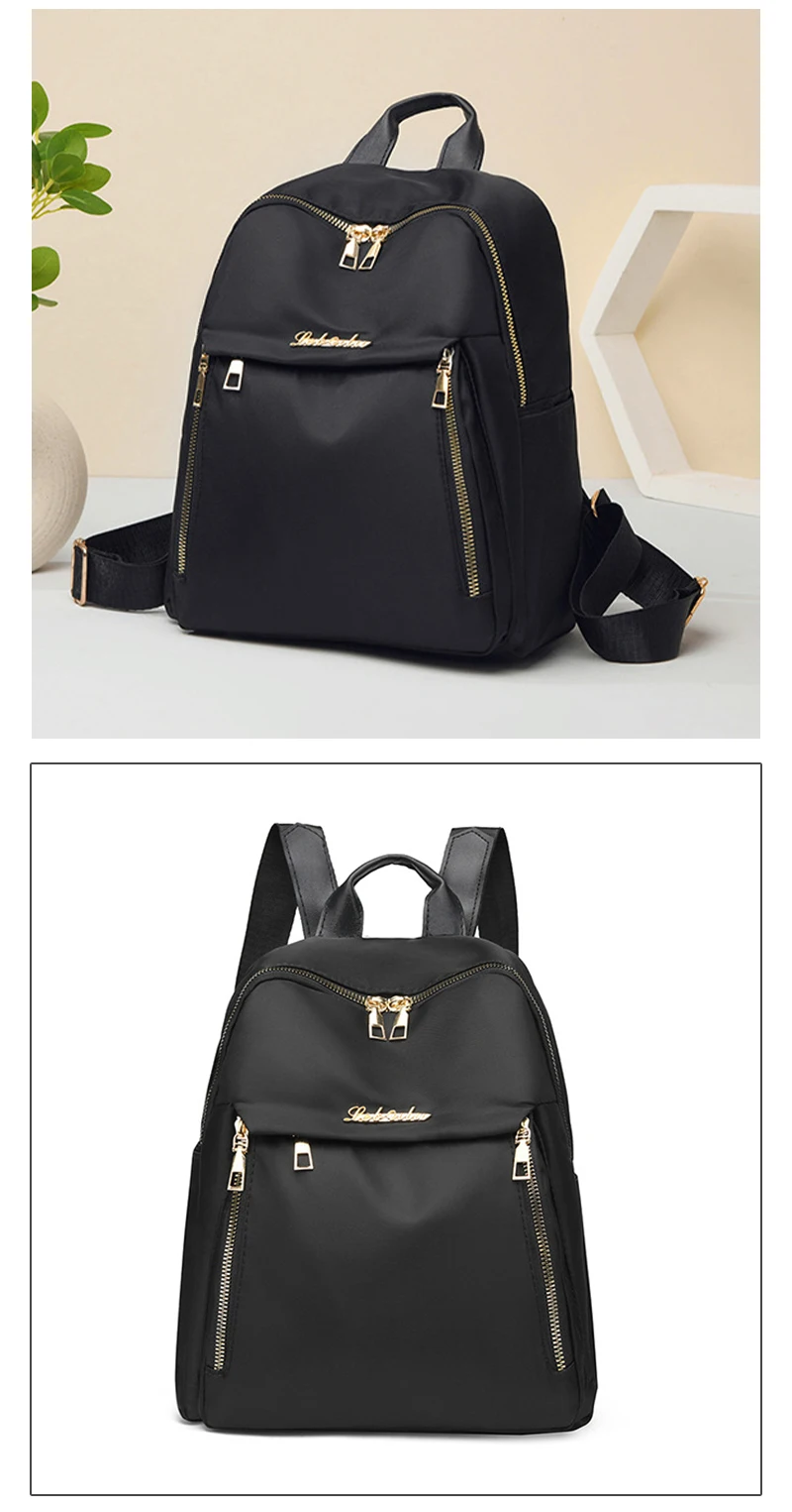 Unisex Large Capacity Black Oxford Backpack for Travel