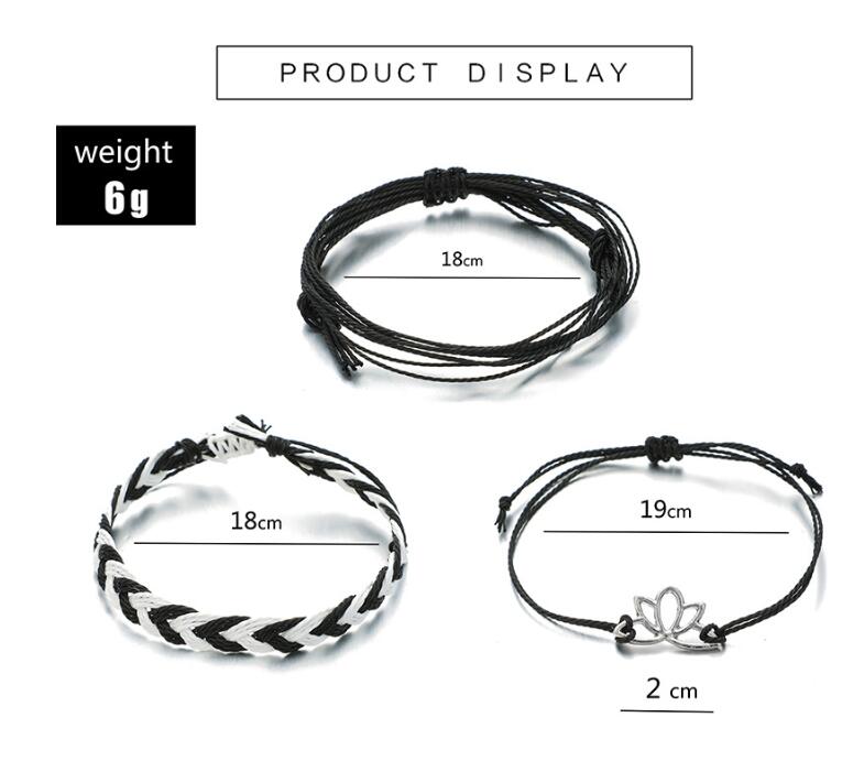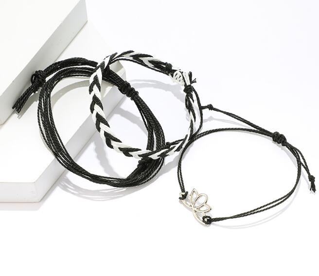 Bohemian Lotus Pendant Bracelet - Handwoven Black Rope