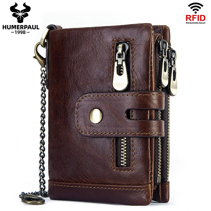 Compact Genuine Leather Men's Wallet with Coin Pocket