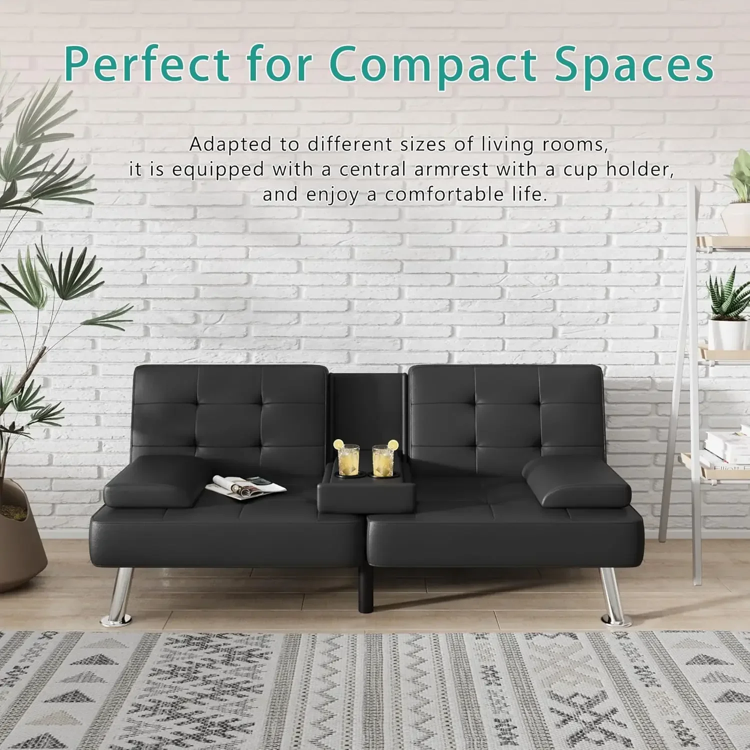 Cozy Time: The futon couch is filled with high-resilient sponges, soft and supportive, covered by selected material, delivering relax and comfort experience just right. The 2 removable cup holders bring much convenient to get a drink when sitting in the sofa