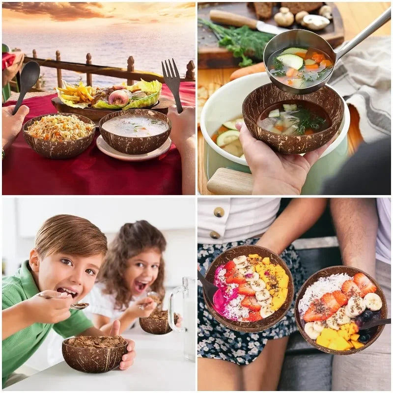 Dessert Fruit Salad Mixing Natural Coconut Bowls Kitchen Wooden Set