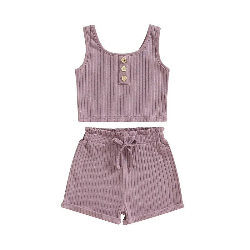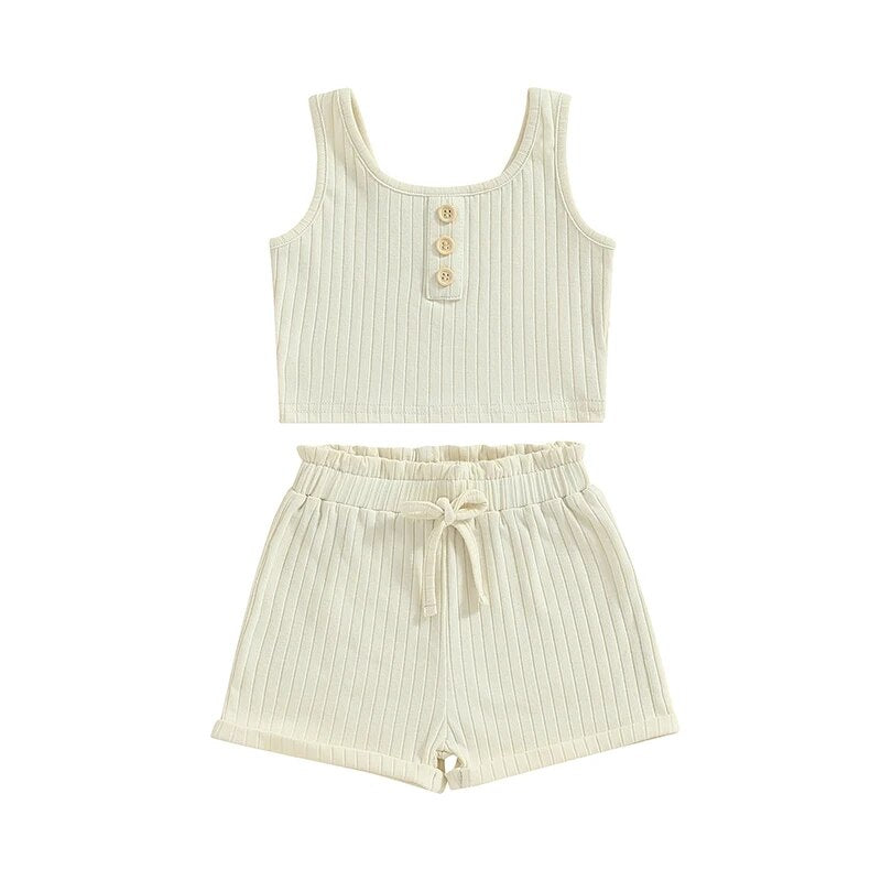 Girls Summer 2 Piece Outfits Sleeveless Button Cami Tops