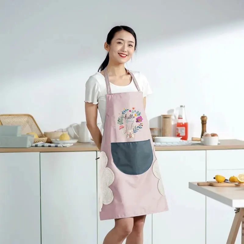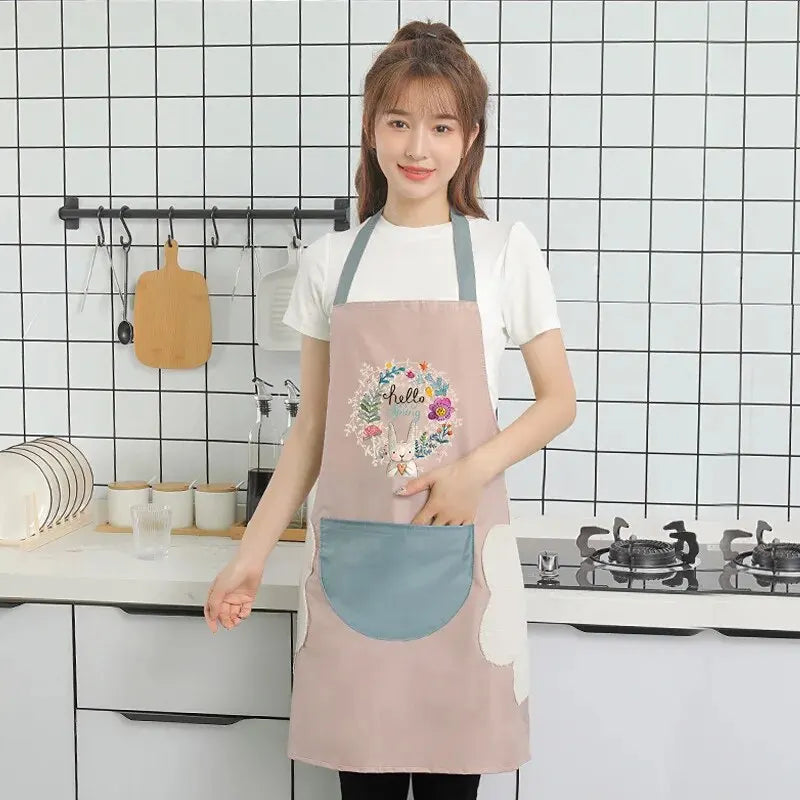 Hand-Wiping Kitchen Apron, Oil-Proof Waterproof Cooking Apron