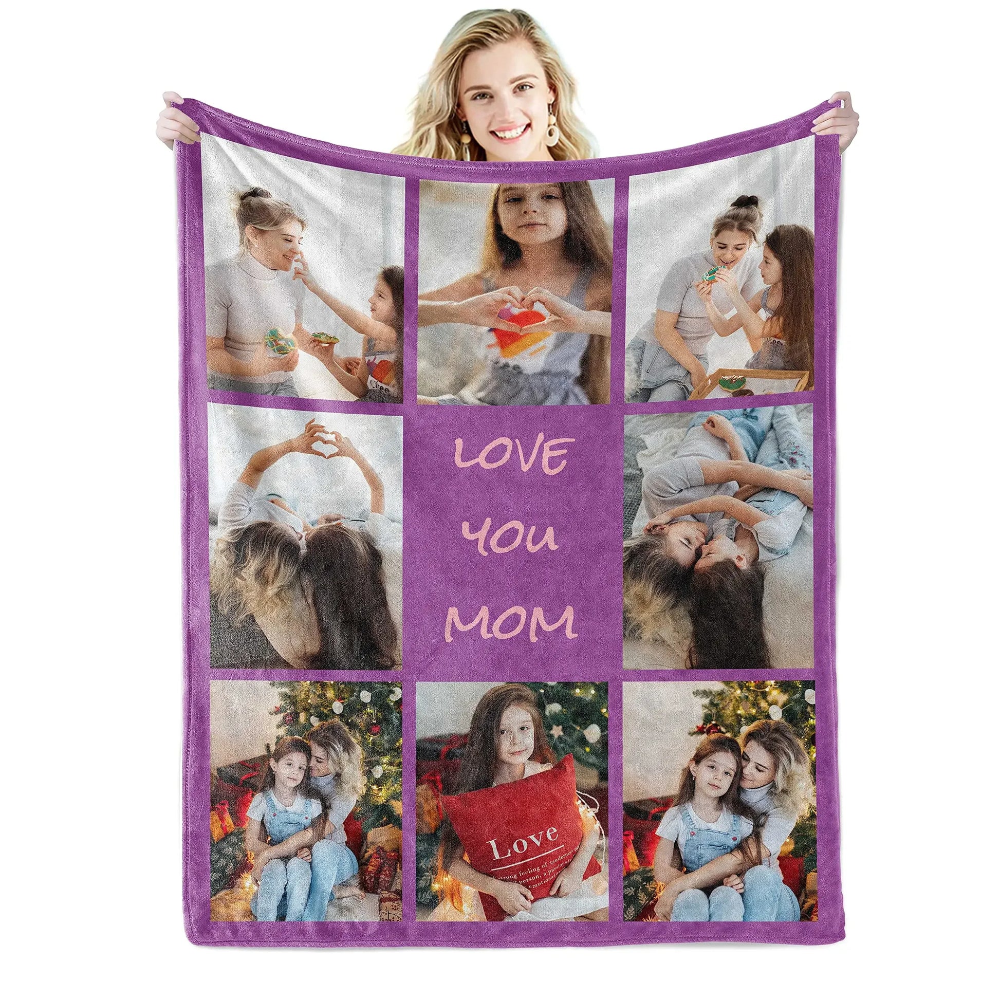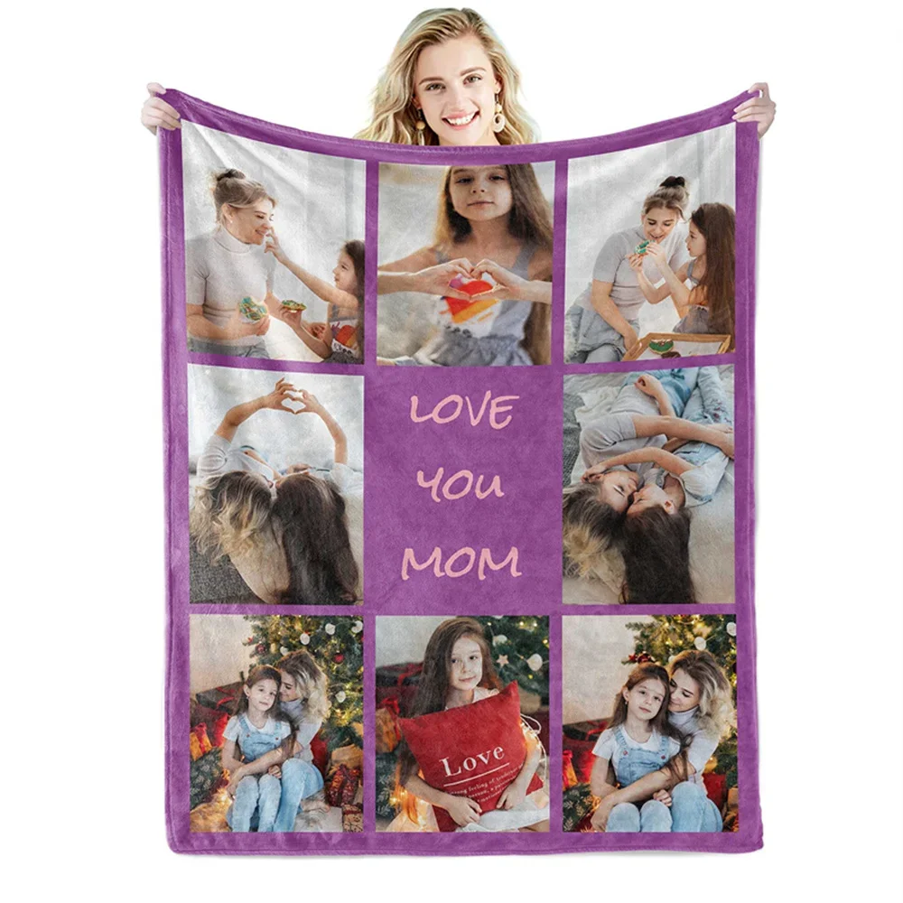 I Love You Custom Blanket with Photo Collage Text Picture Throw Blanket Valentine's Day Birthday Gift