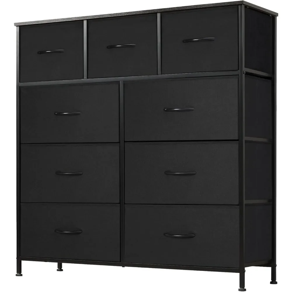 - 【Large Capacity】For easy storage, 9 storage space drawers in 2 sizes are offered. This foldable deep drawers are spacious enough to provide endless organizational possibilities. Wooden top of the dresser organizer is great for lamps, clocks, glasses and other daily essentials, keeping them in your reach.