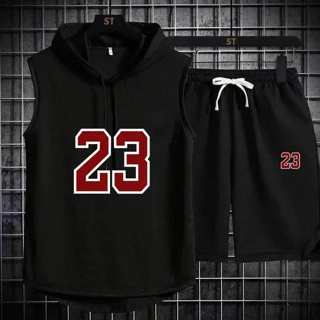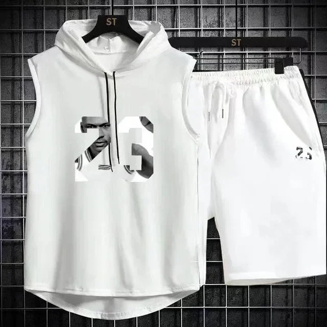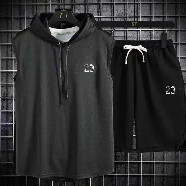 Summer Men's Two-Piece Set Casual Hooded Tracksuit Shorts