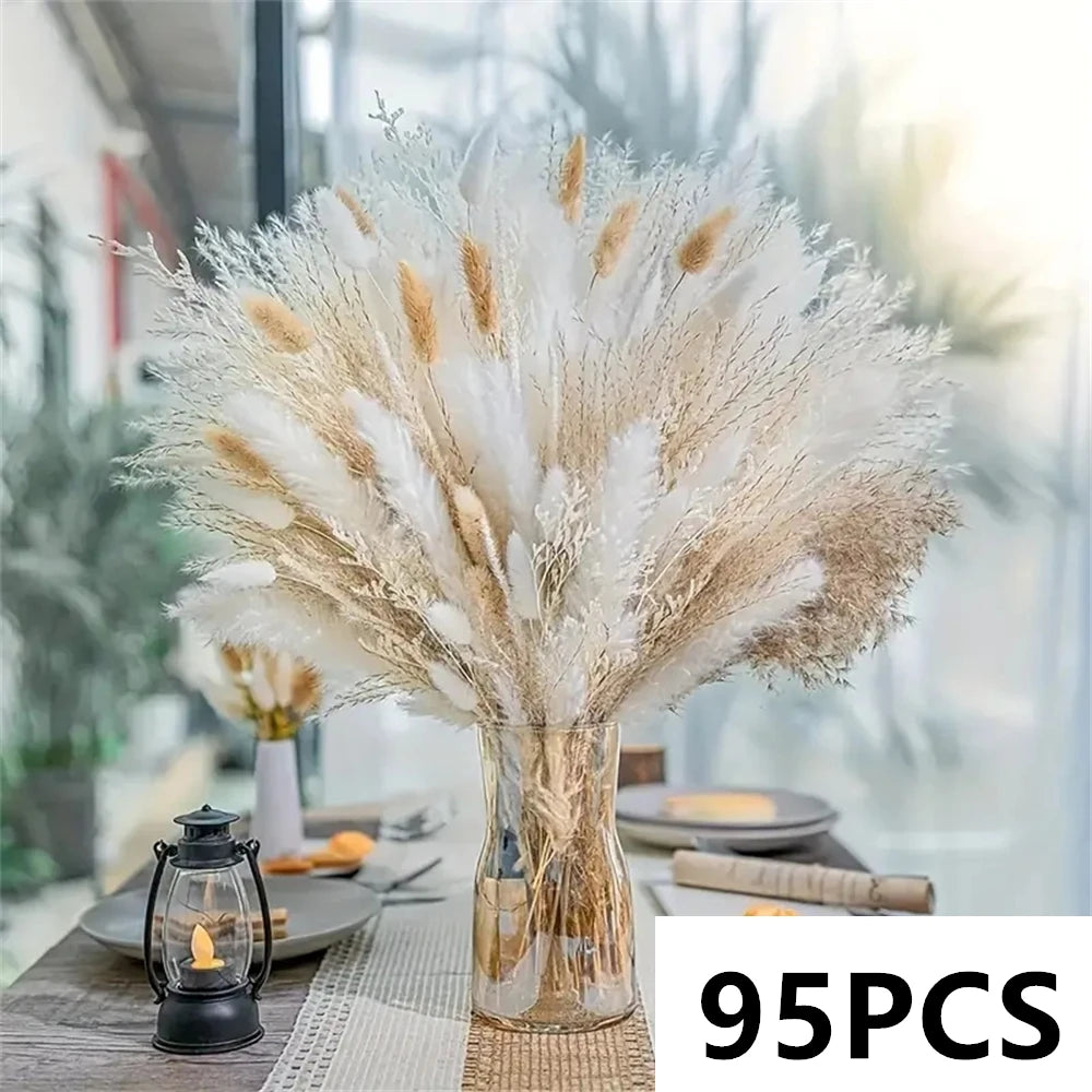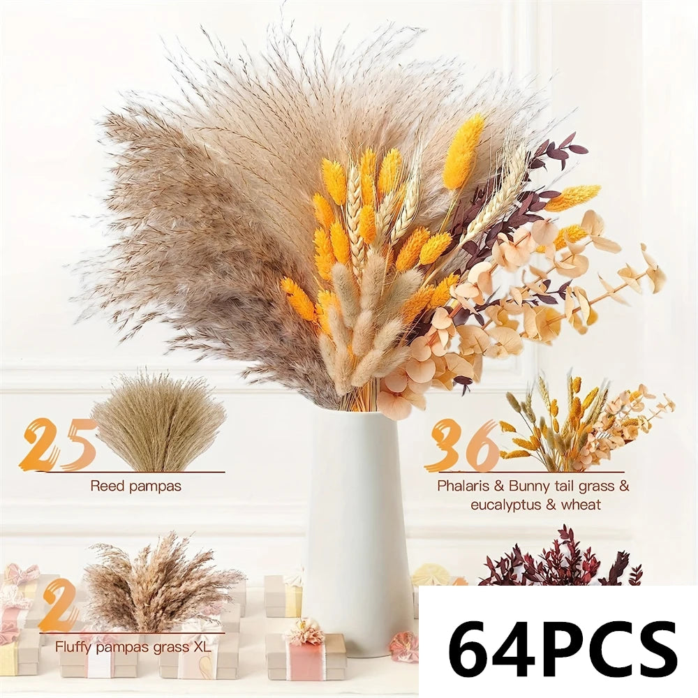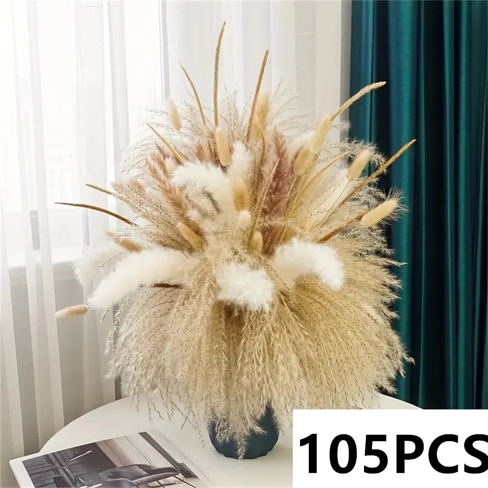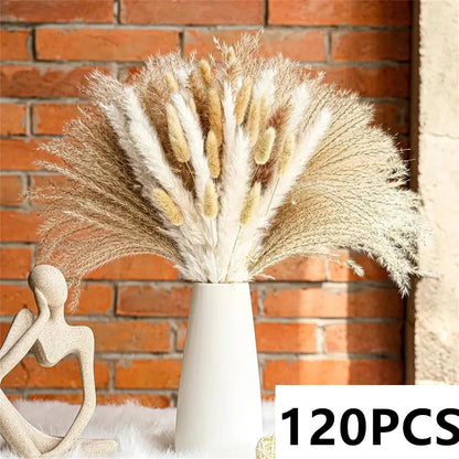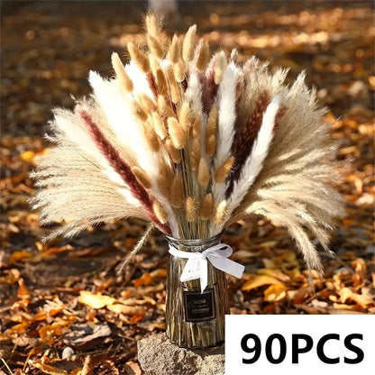 Natural Pampas Dried Fake Flowers - Boho Decor for Vases