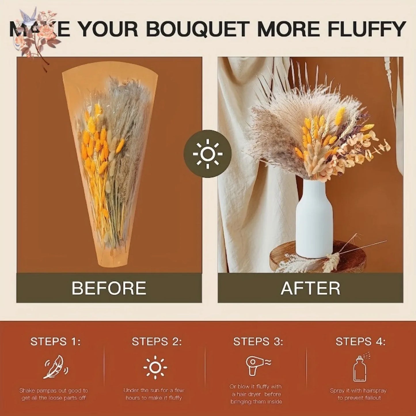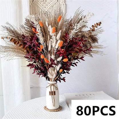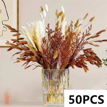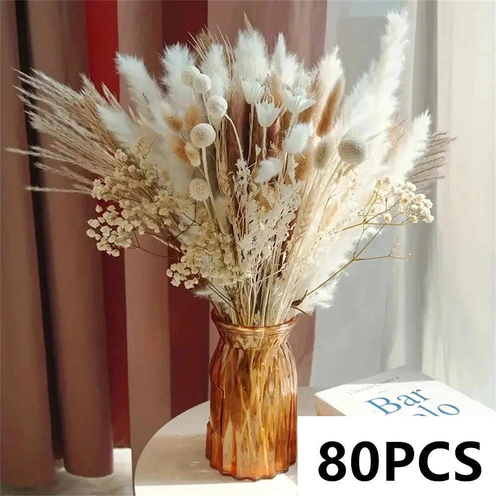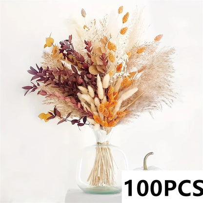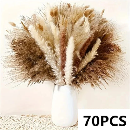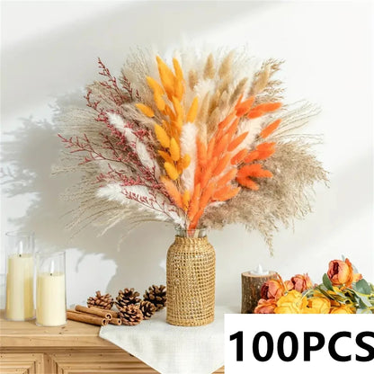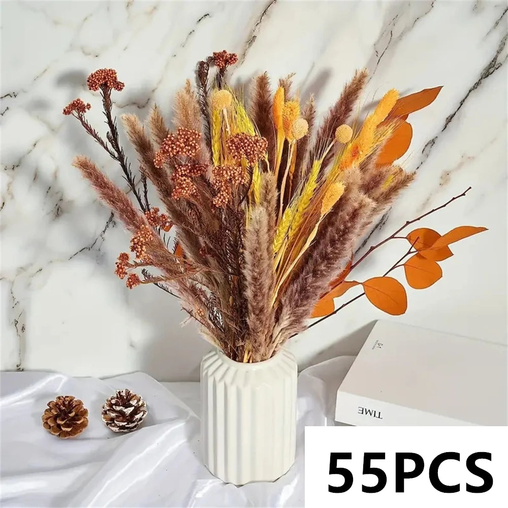 Natural Pampas Dried Fake Flowers - Boho Decor for Vases