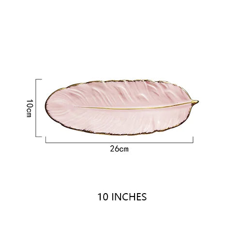 Nordic Ceramic Gold Plated Leaf Tray Fruit Cake Plate Decor
