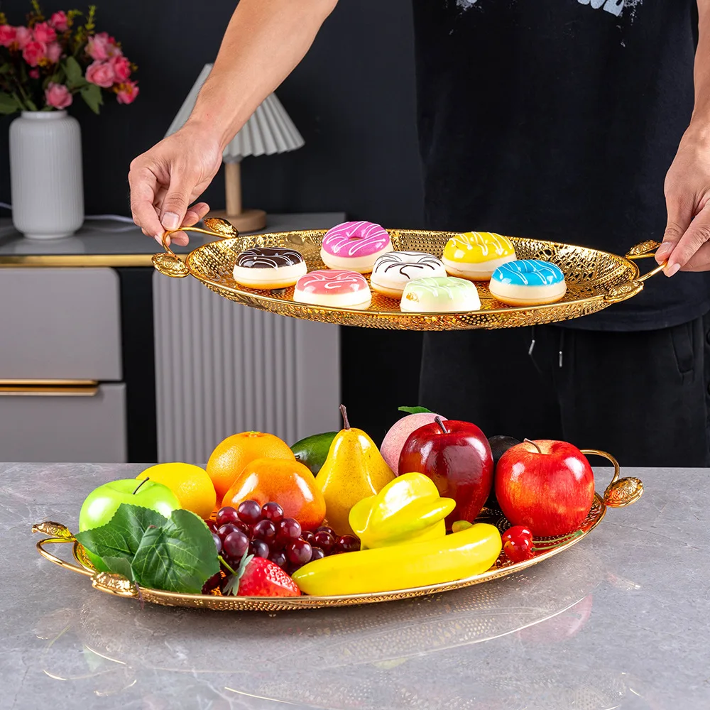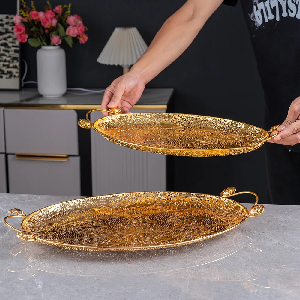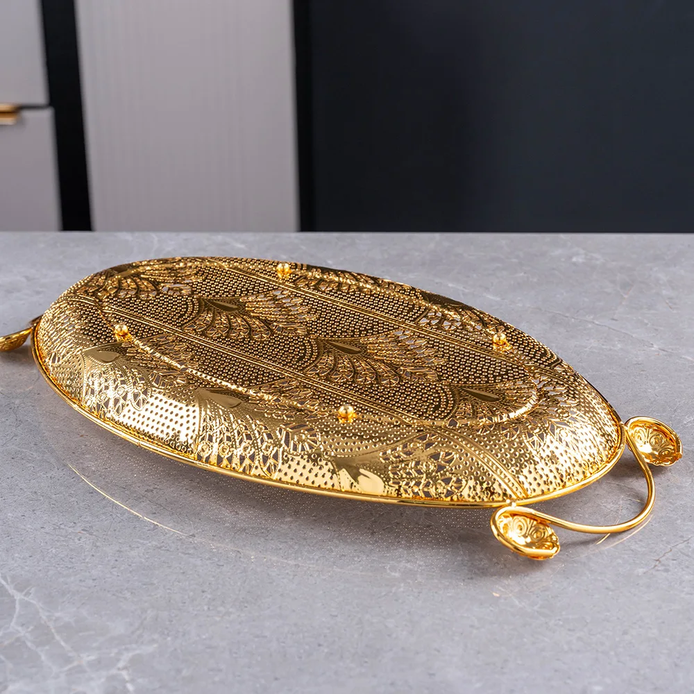 Oval Gold Metal Serving Tray