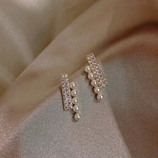 Women Pearl Crystal Stud Earrings