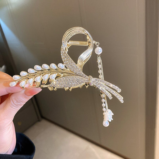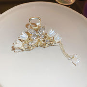 Pearl Lily Hair Clips with Butterfly Tassel